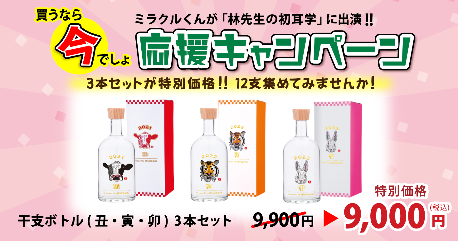 当社も干支ボトルを通してミラクルくんの活躍を応援したいという想いから、この度干支ボトルを3本セットにした応援キャンペーンを開始します。