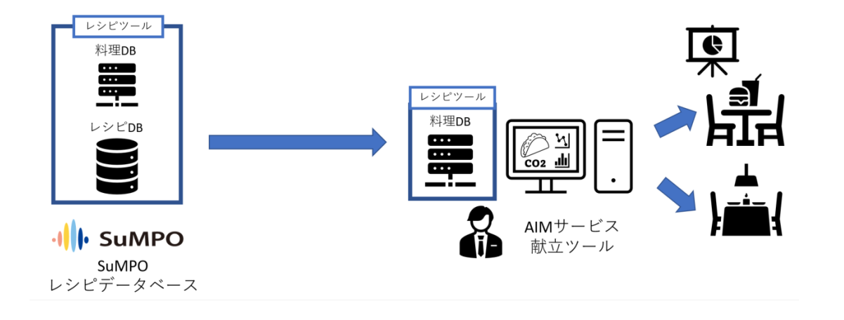 CFPは、原材料調達から廃棄・リサイクルに至るまでのライフサイクル全体を通して排出されるGHG排出量をCO₂に換算して、商品やサービスに分かりやすく表示する仕組みです。「レシピdeカーボンフットプリント」は、レシピ情報を用いて食事メニューのCFPを算出するサービスです。CFPを算出するためのデータベースには、国立環境研究所が構築した3EID(産業連関表ベースのGHG排出量DB)を用いており、食材および調理工程を中心としたデータの構築をすすめています。