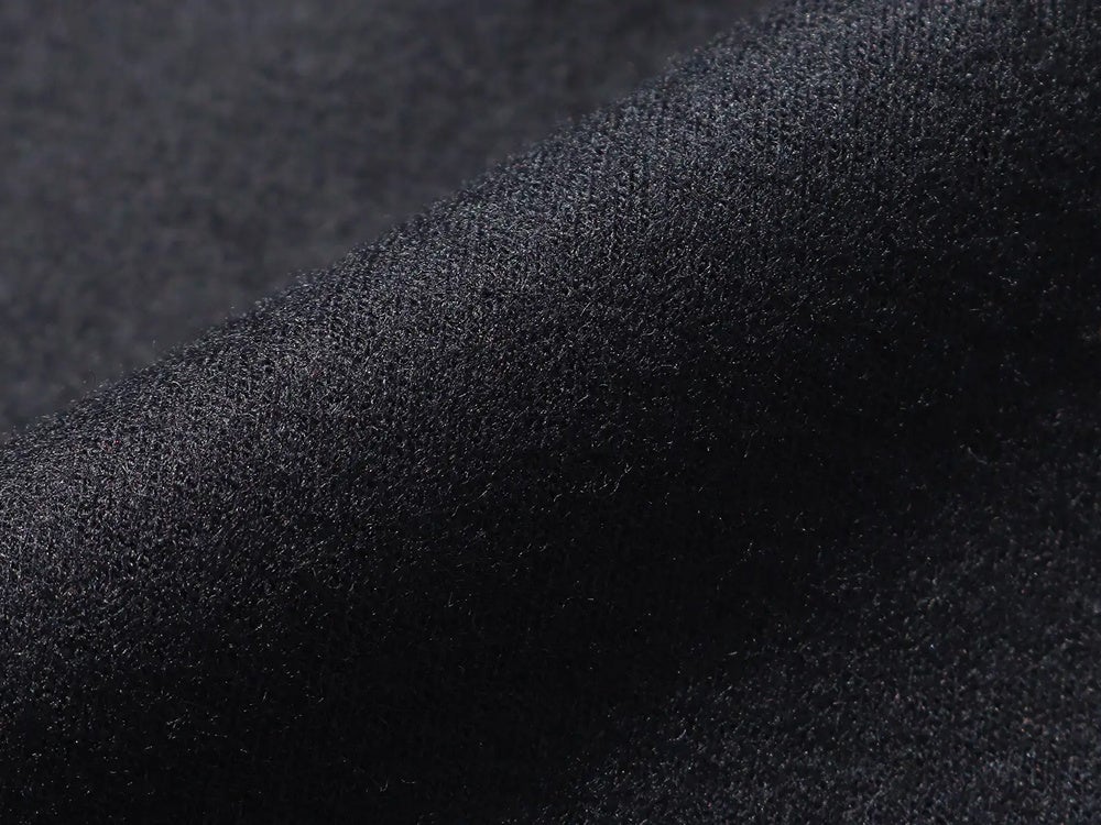 伸縮性のある快適なジャージー素材であるにもかかわらず、一目で高級感を感じる滑らかで美しい生地表面。高級スーツ地に見られる光沢と品位を持つ素材。