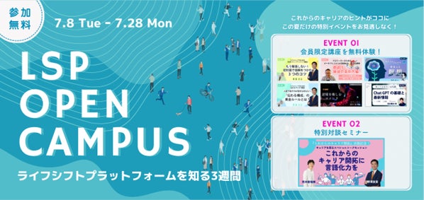 年間約200講座行われている実践的なミドルシニア向けの講座の体験や、書籍発売を記念しキャリア開拓に重要な“言語化”について学べる夏の合同イベント「LSPオープンキャンパス」を7/8〜7/28の約3週間にかけて開催中!
