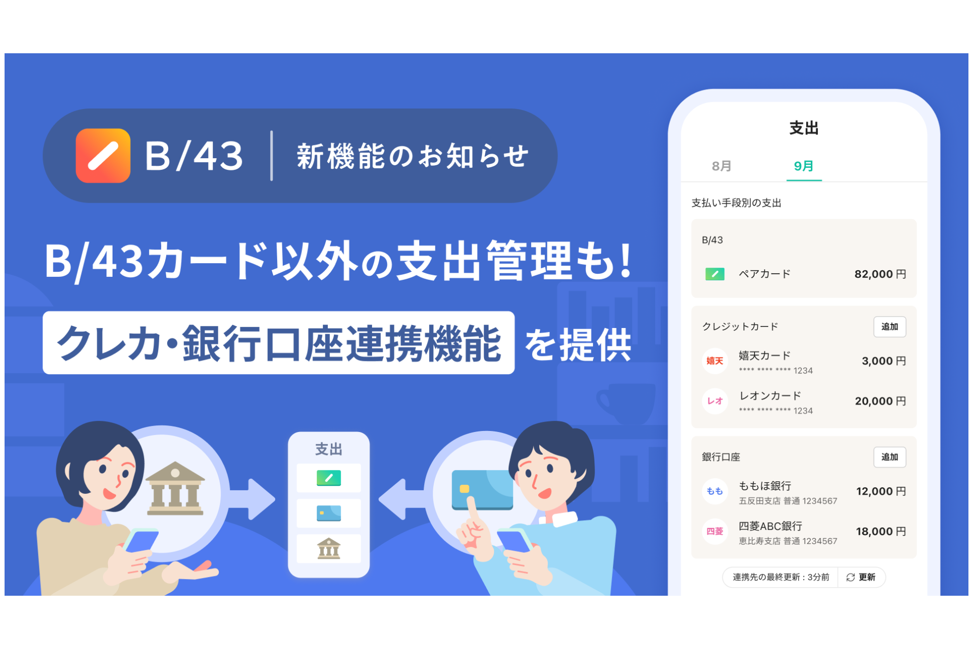 家計簿プリカ「B/43(ビーヨンサン)」、クレジットカード・銀行口座連携機能の無料提供を開始