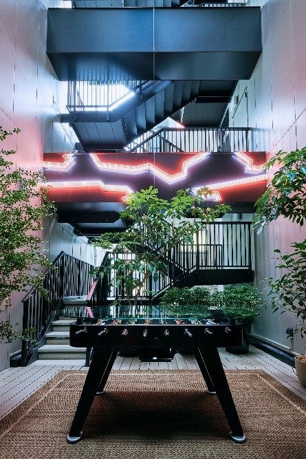ノーガホテル秋葉原では、ホテルカラーにカスタイマイズされたRS BARCELONA社製フットボールテーブルを館内に設置しており、お酒を飲みながら、友人や居合わせた方とテーブルフットボールを満喫いただけます。