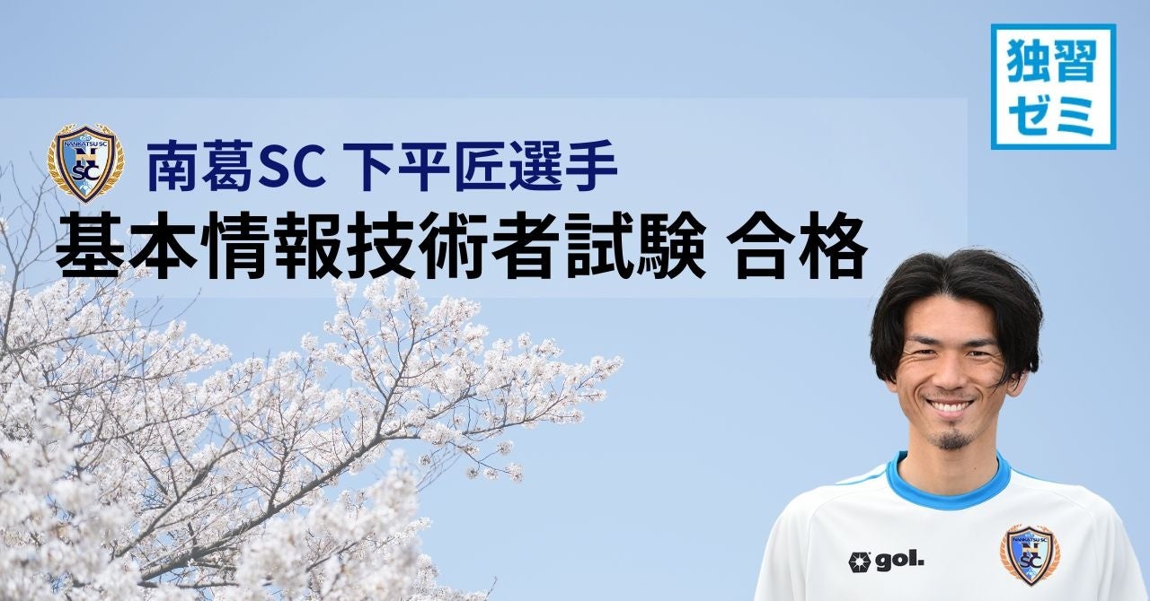 南葛SCの下平匠選手はサッカー選手として活躍する傍ら、システム開発会社でエンジニアの仕事もしており、“エンジニアの登竜門”と称される国家試験「基本情報技術者試験」の合格を目指されておりました。