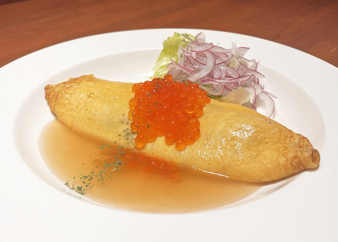 サーモン入りのオムレツに「シラリカいくら」を乗せたメニューです。