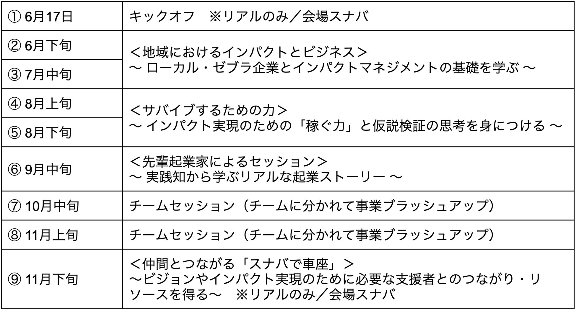 ・セッション全てに参加する意思がある(キックオフと「スナバで車座」のみ対面、そのほかセッションはオンライン)