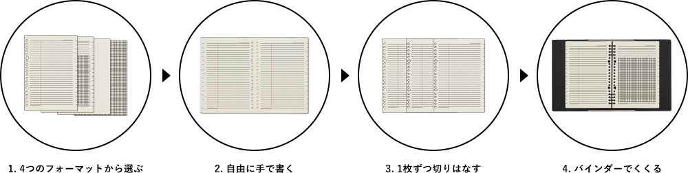 情報が溢れている時代だからこそ書いて記録するだけではなく、書くこと、組み合わせることで考えがまとまっていく、大人のためのカスタマイズ型ノートブックです。アクセサリー類も活用することで情報や思考をスマートに整理することが可能です。