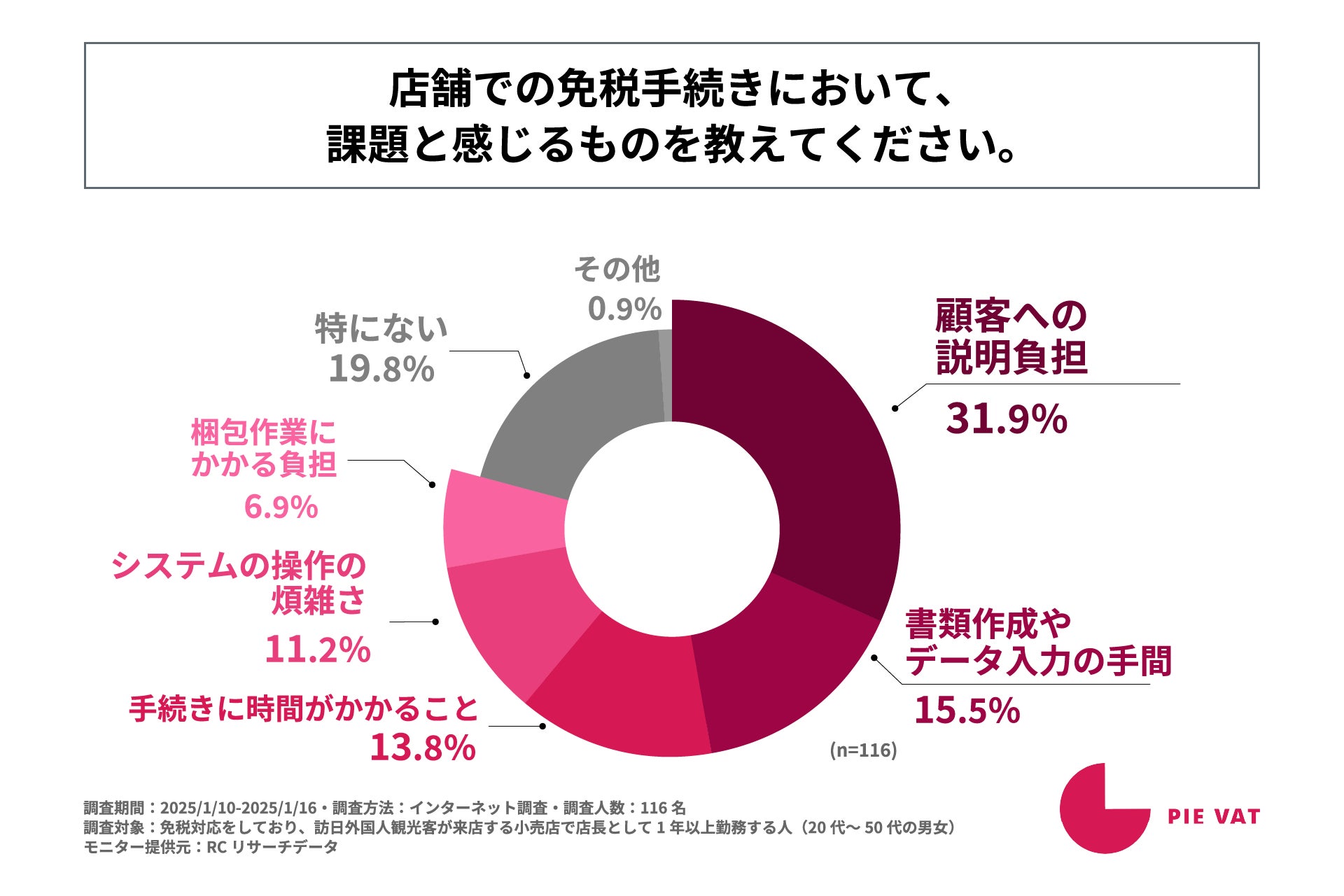 店舗での免税手続きにおいて最も課題だと感じるものは「顧客への説明負担」