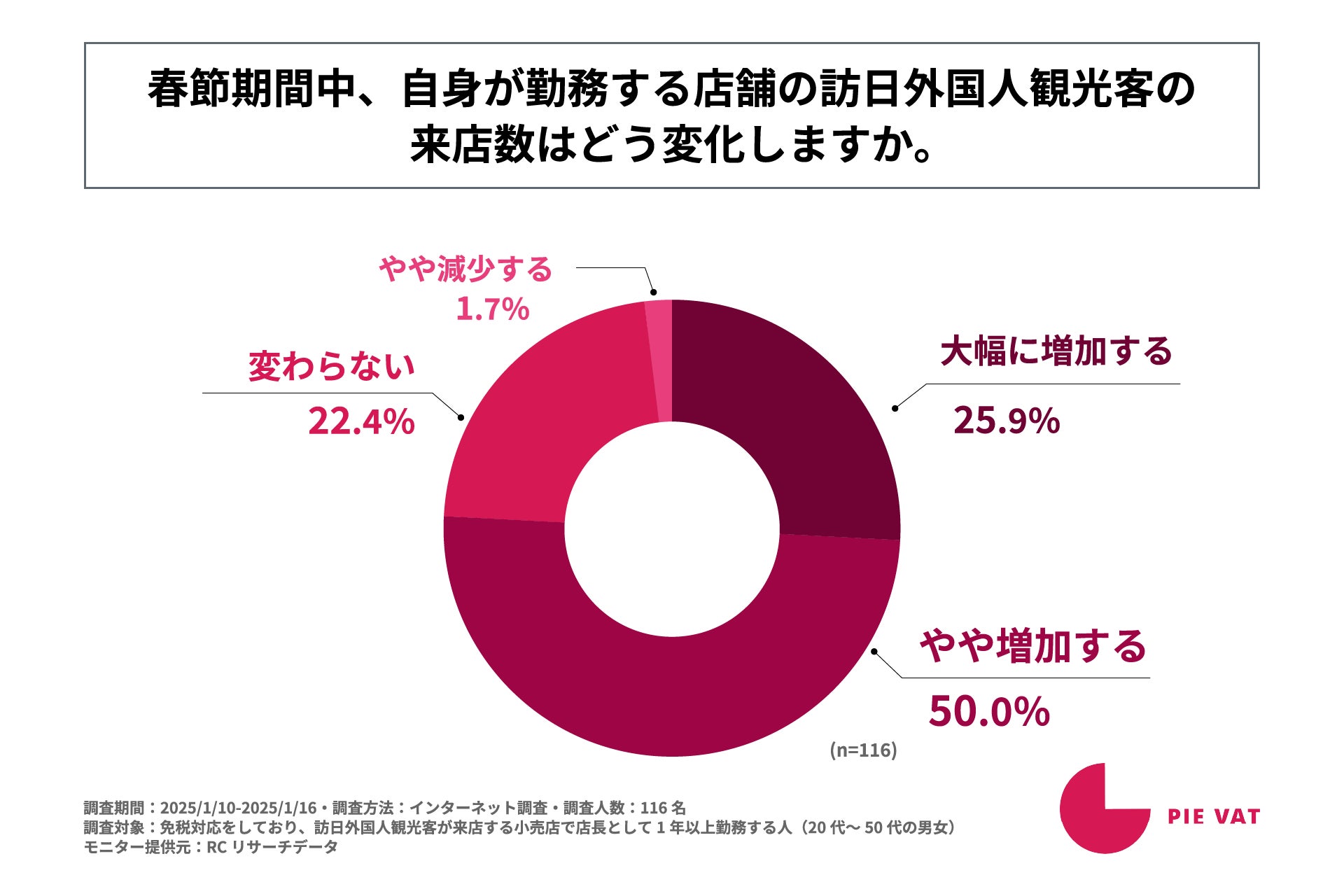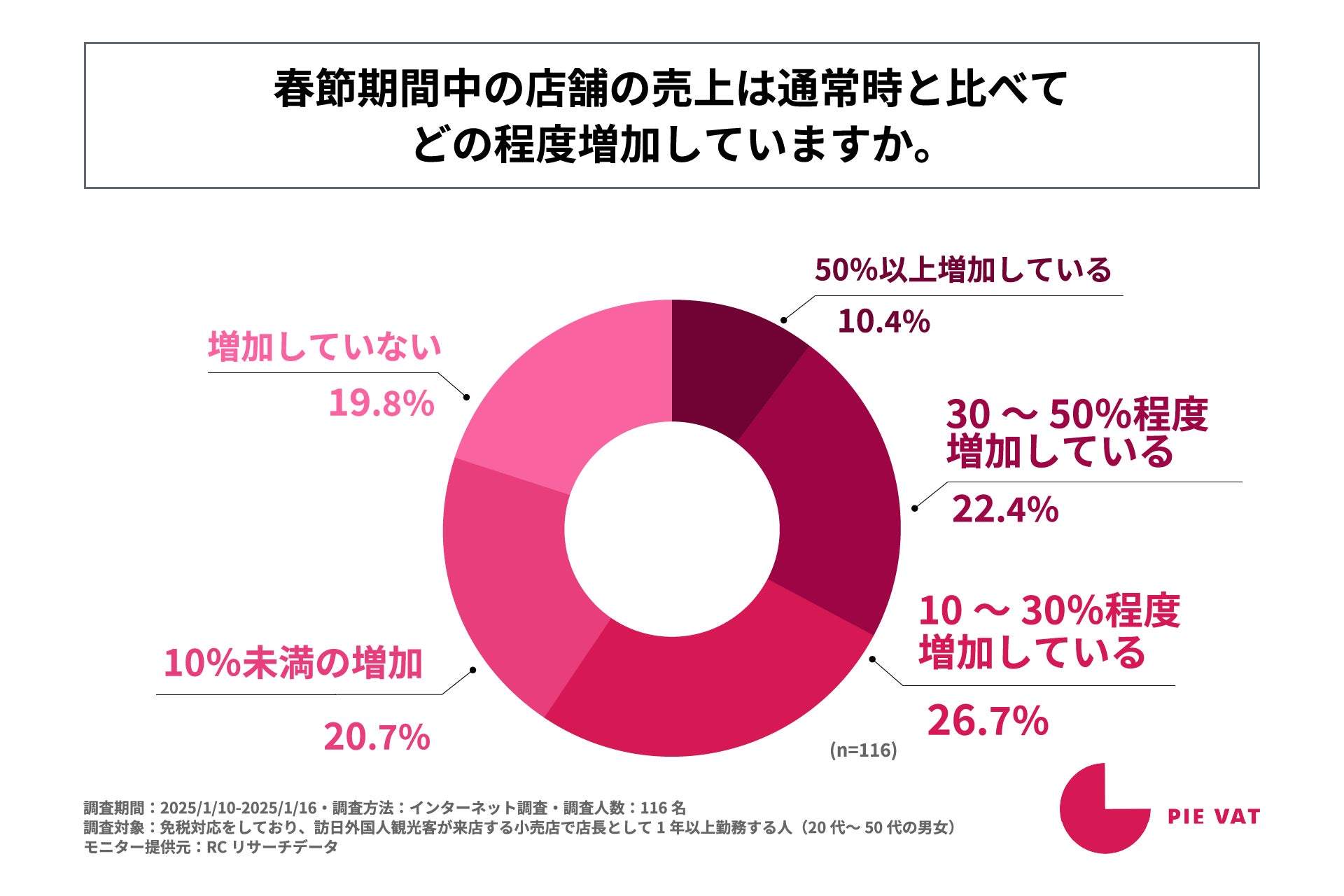このような背景のもと「PIE VAT」は、免税対応をしており、訪日外国人観光客が来店する小売店で店長として1年以上勤務する方を対象に「春節期間中の訪日外国人観光客と免税店の実態」について調査を実施しました。
