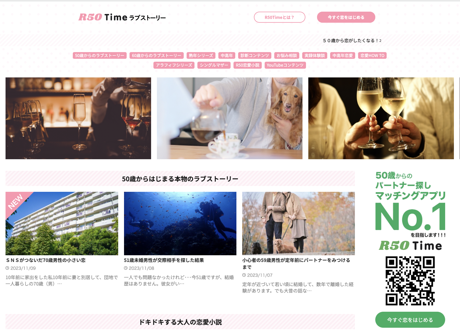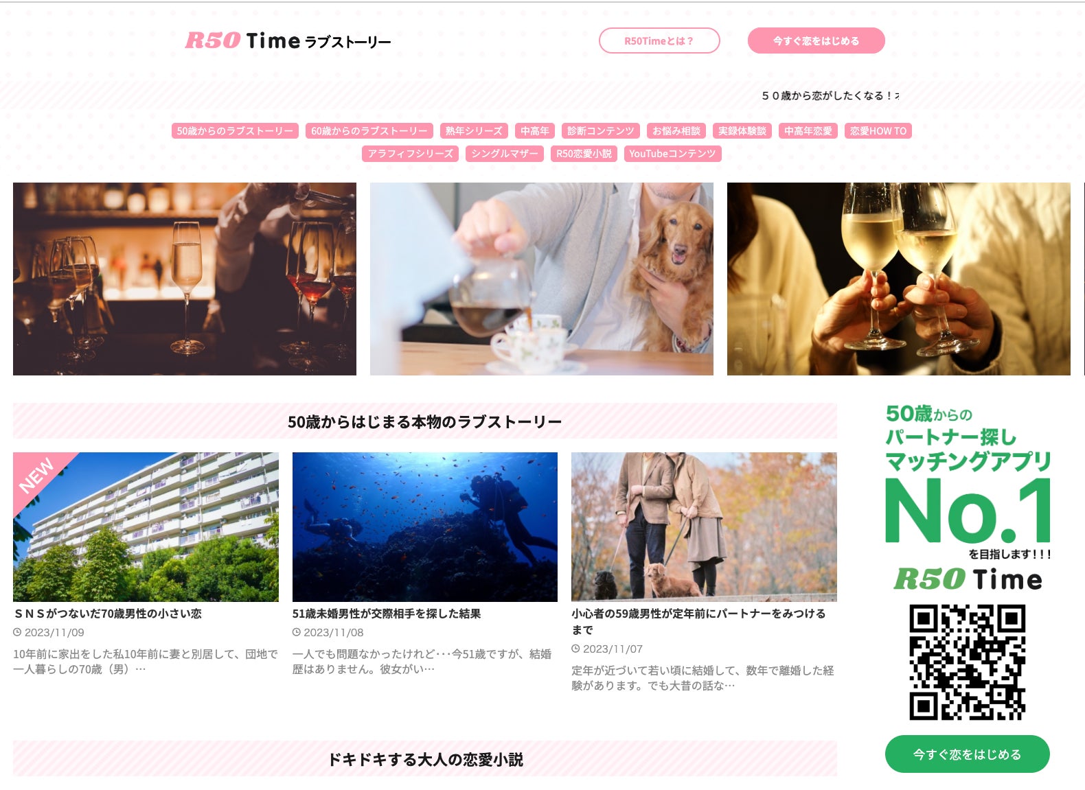 『R50Time ラブストーリー』(オウンドメディア):https://news.r50time.jp/