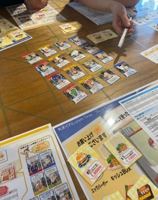 当日ご参加された皆さまは真剣に取り組み、学生と同じようにゲームを楽しんでくださいました。どんなお弁当が売れるのかを予想し、出たカードに一喜一憂しながら各グループで盛り上がっていました。お客さま同士でお弁当の種類をどのように配分するか分析しあうテーブルもあり交流も深まっているようでした。