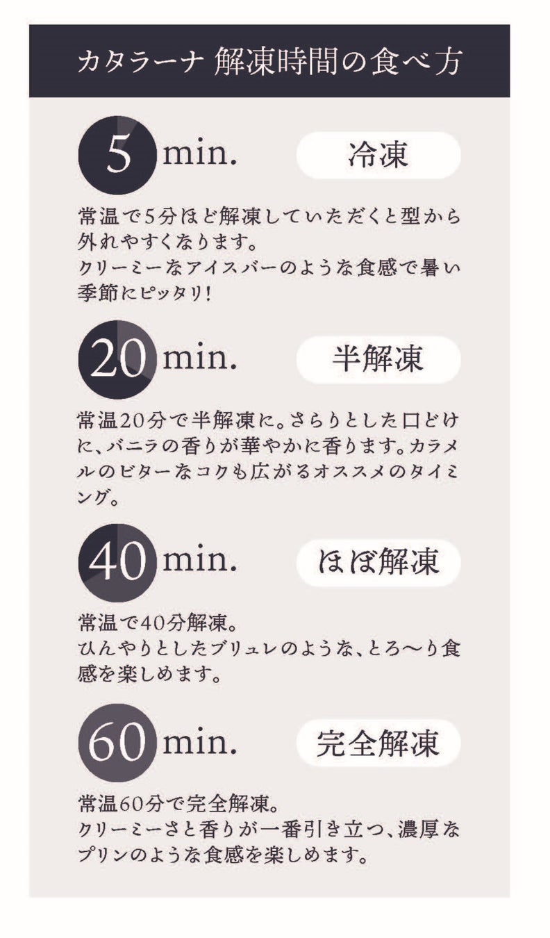 希少なタヒチバニラのカタラーナとブルボンバニラのカタラーナ、2種類のカタラーナを味わえるセット商品です。最高級グレードAのバニラビーンズを丁寧に煮出し、バニラの香りを最大限に引き出しているカタラーナ(ブルボンバニラ)と、希少なタヒチバニラを使用したカタラーナは、同じバニラでも全く香りが異なります。ぜひお召し上がりいただきご体感ください。