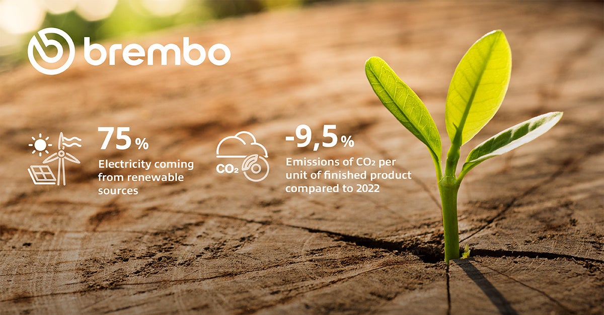 ブレーキシステムのグローバルリーダーあるブレンボは、強い決意でサステナビリティ計画を継続しています。2023年は完成品の単位あたりCO2排出量を9.5%削減しました。再生可能エネルギー電力の使用率は過去の水準を超える75%に達し、特にブレンボグループが事業拠点を置くイタリア、メキシコ、ブラジルでは再生可能エネルギー使用率100%を実現しています。