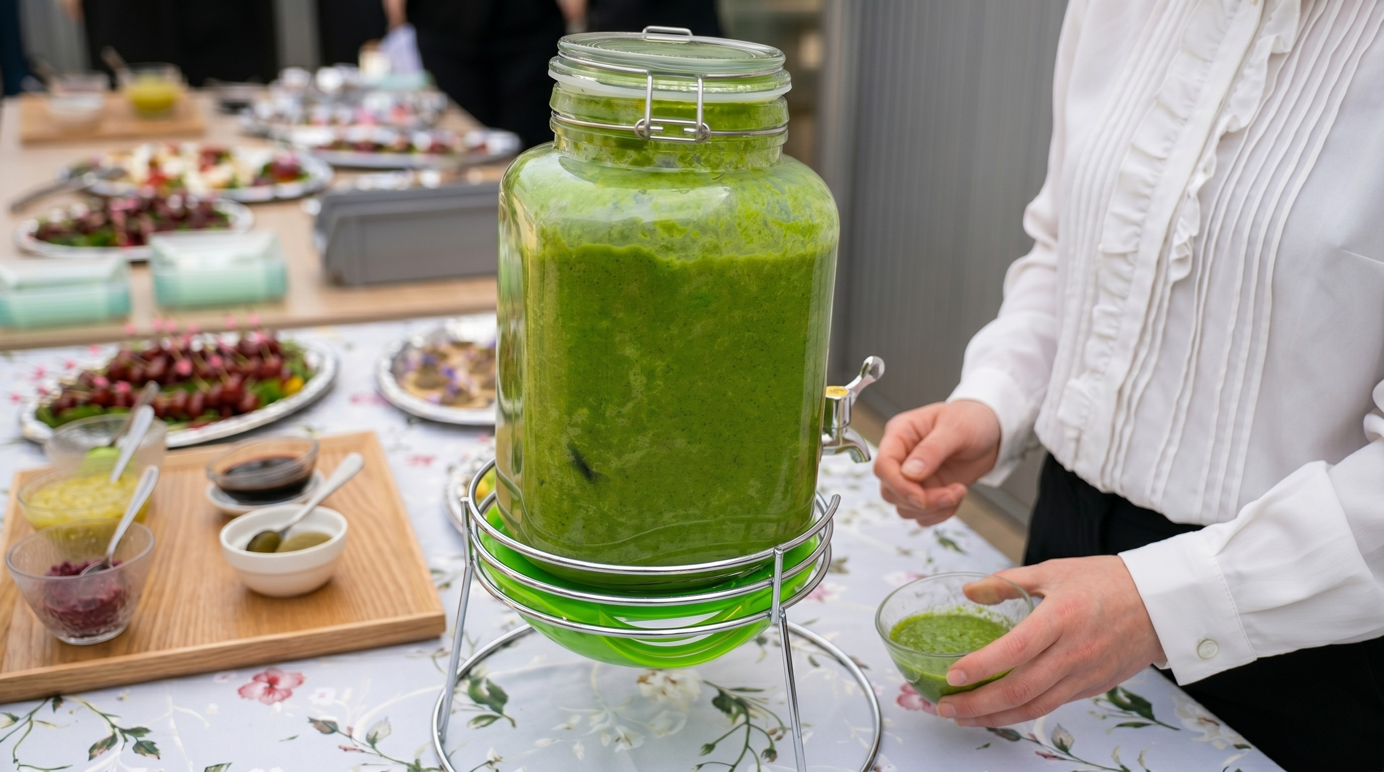 1750年の創業以来、300年にわたり酒造りを続けてきた「七賢(山梨銘醸)」 。その樽酒を用いた鏡割りが行われ、南アルプス・甲斐駒ヶ岳の天然水で醸された酒が振る舞われました。これは単なる提供に留まらず、ゲストが地域の歴史や風土に触れるきっかけとなるパートナーシップの象徴です。