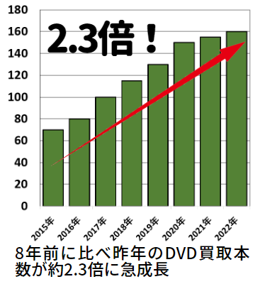そんな中、2021年より「男の終活」を発信してきた利根書店では、昨年に過去最高となる160万本ものDVDを買取しました。