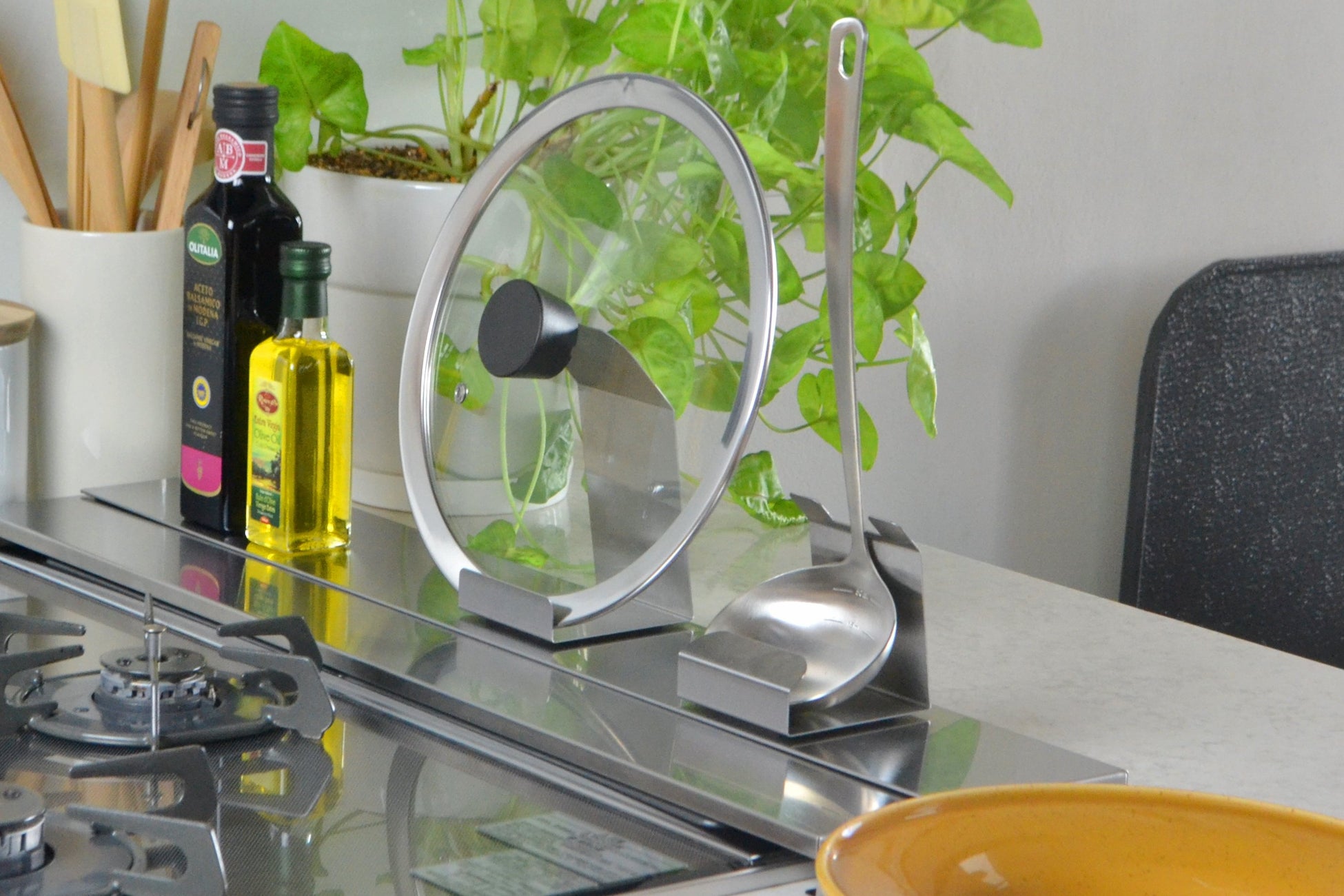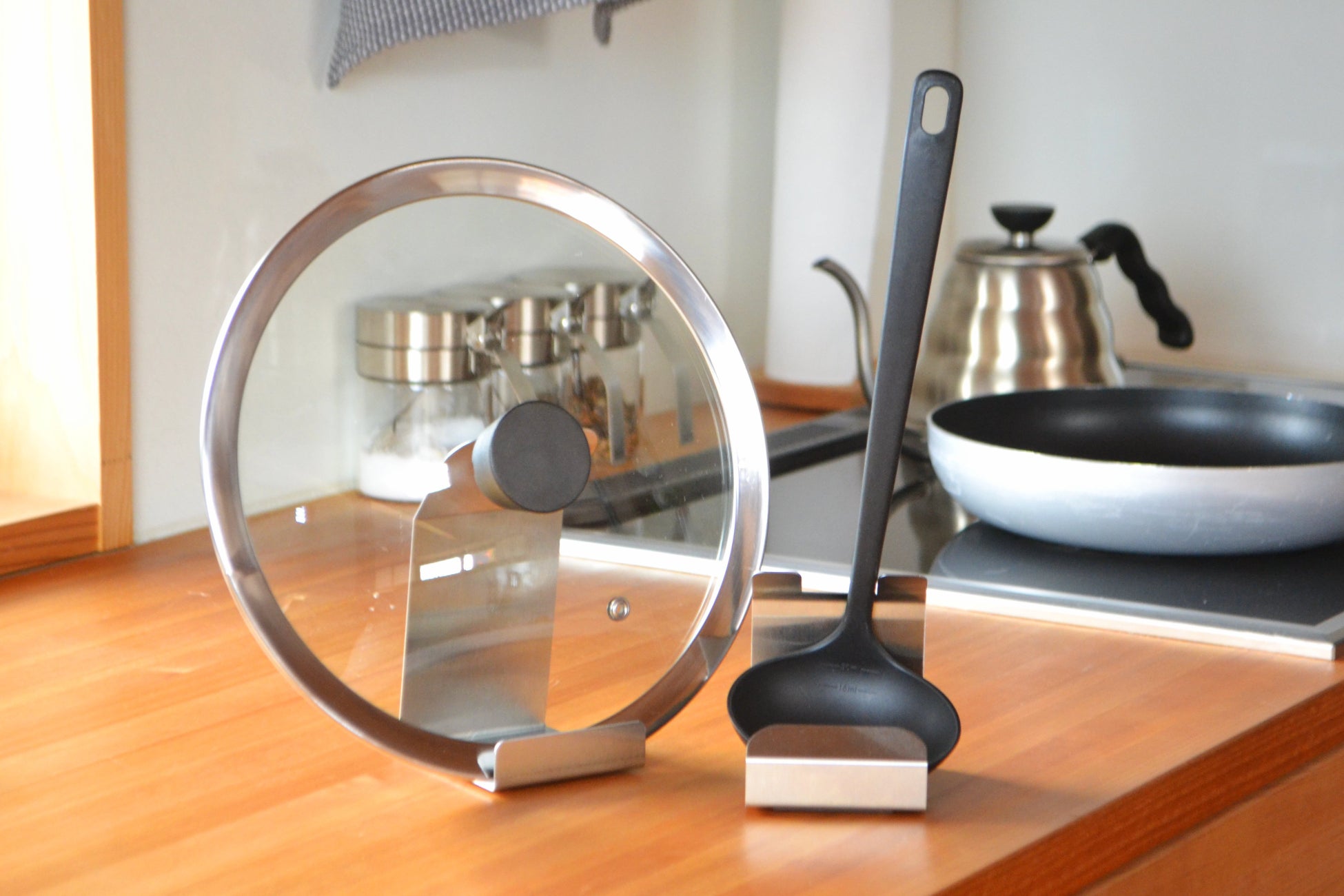 また、マグネットに対応しており、別売りの[マグネット付き鍋蓋・お玉スタンド]が取り付け可能。こちらは、調理中のどこに置いたら良いか迷いがちな鍋蓋とお玉を仮置きできるスタンドです。