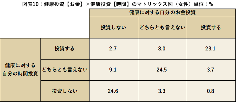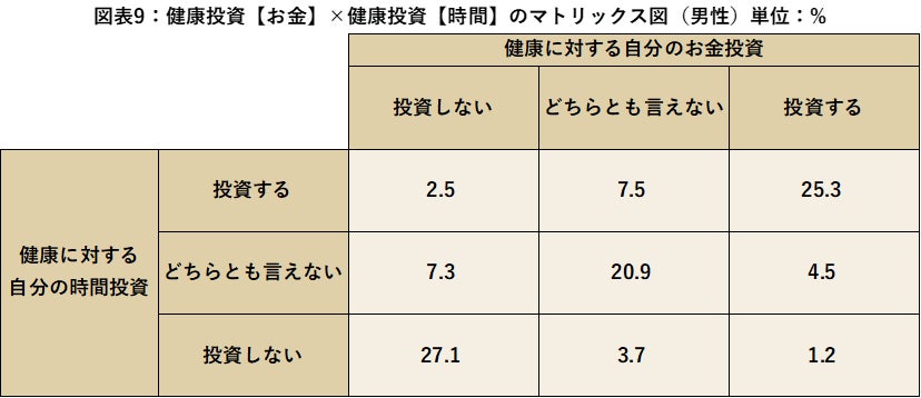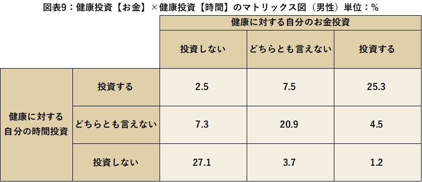 健康に対して【時間】と【お金】両方に投資する人は男性25.1%、女性では23.1%