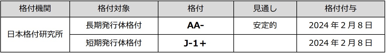 JCRの長期発行体格付「AA-」、短期発行体格付「J-1+」を取得