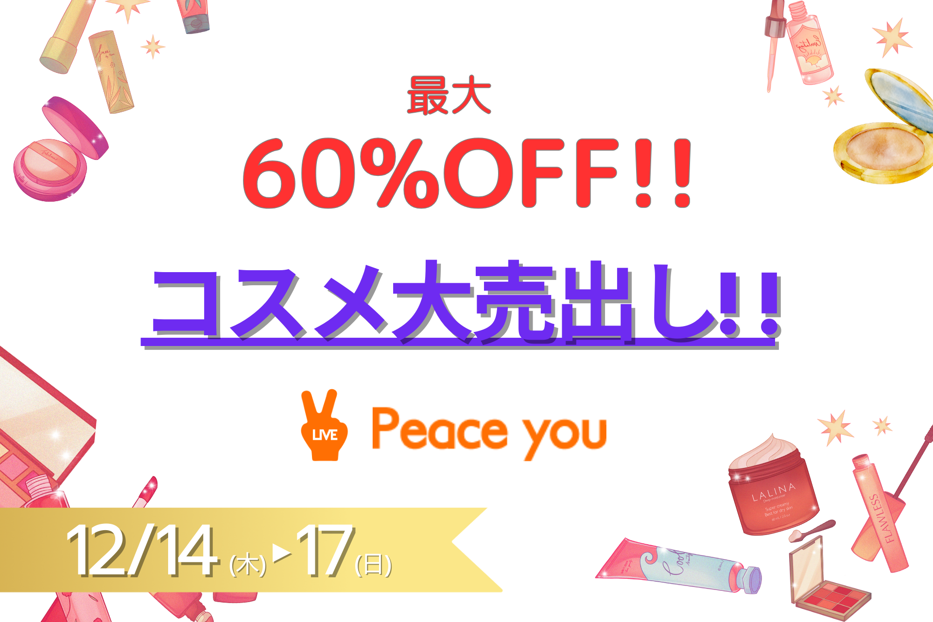 Peace You Live、最大60%OFFの年末コスメ大売出し企画を開催 12月は最大20%のキャッシュバックキャンペーンも同時開催中