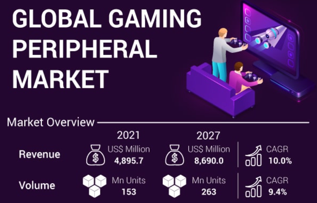 ゲーミングペリフェラル市場は2027年に8690百万米ドルに達する見込み