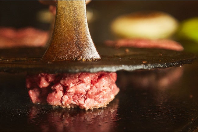 SHOGUN BURGERといえば和牛粗挽きパティ。しっかりとした食べ応えと食感が特徴で、和牛のスネ肉を鉄板の上でスマッシュして牛の旨みを存分に活かしたパティを使用しています。