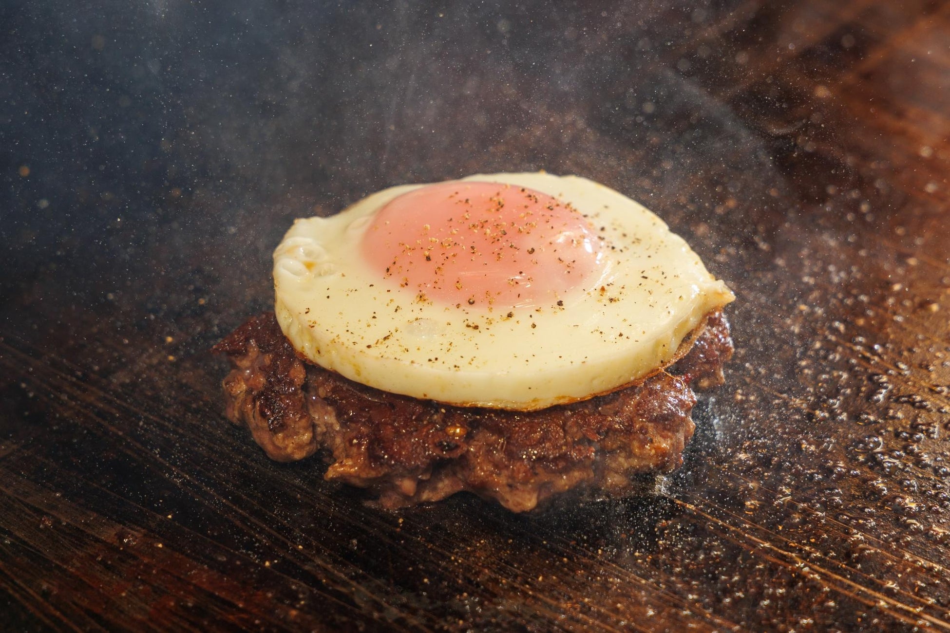 卵は“田中農場”さんから雑味の少ないとても濃厚な卵を使用しております。和牛の上にとろ〜りと溶ける半熟卵はパティとの相性も良く、絶品です。