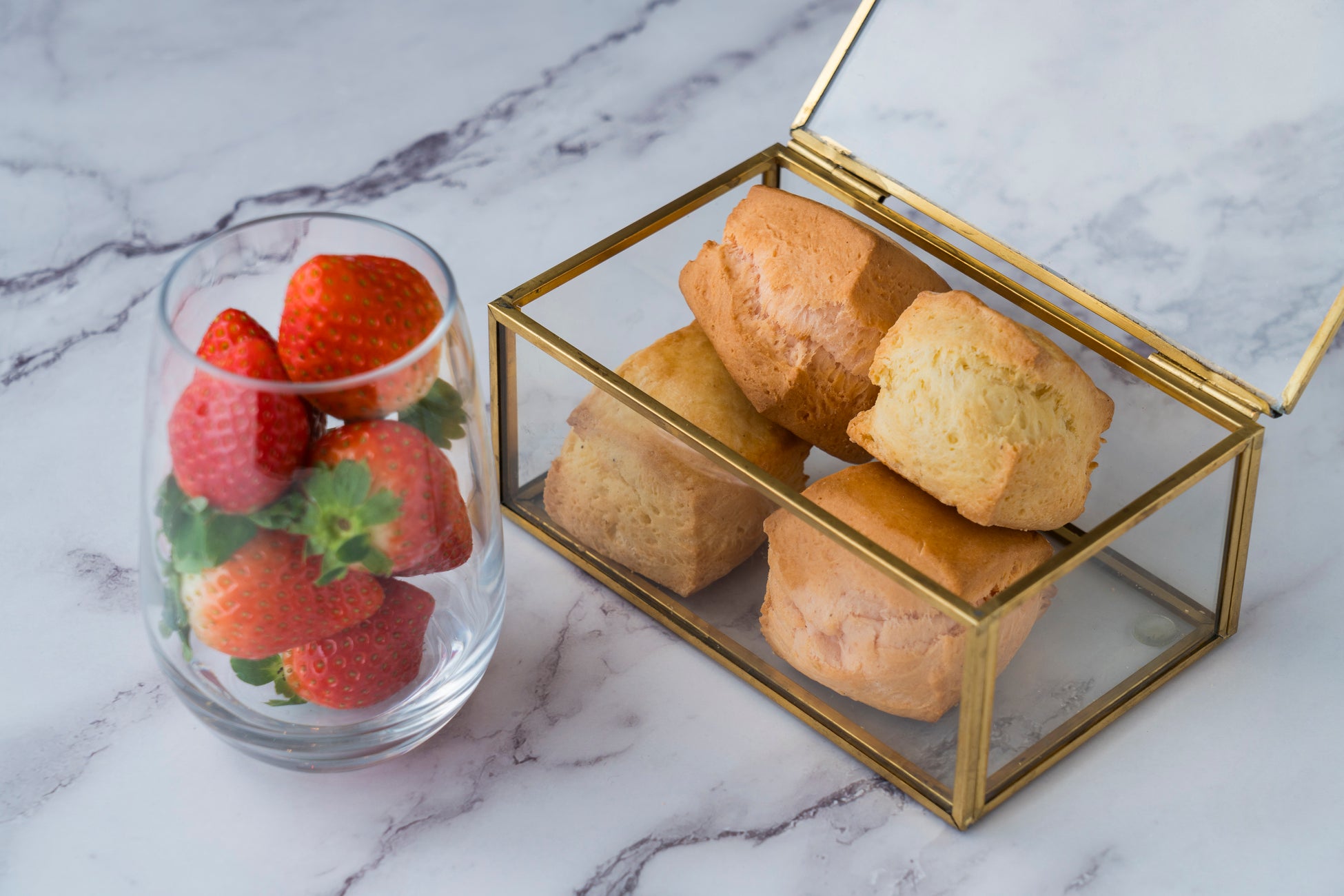 シェフが腕を振るうセイヴォリーも、コスメやファッションアイテム着想の装いで登場し、目と舌を楽しませます。ホテルメイドのローストビーフとマッシュポテトをパイ生地に乗せ、フェイスパウダーのコンパクトをイメージした「ローストビーフパイ」、タコやセロリ、ブラックオリーブとグリーンオリーブをバルサミコ酢でマリネし、薔薇の花びらのように仕立てたフレッシュ苺がフォトジェニックな「ローズストロベリーサラダ」、サボイキャベツとハモンセラーノのテリーヌをストロベリーサルサで鮮やかに仕上げた「ストロベリーテリーヌ」など、シェフの技が光る繊細で美しい6品をご賞味ください。