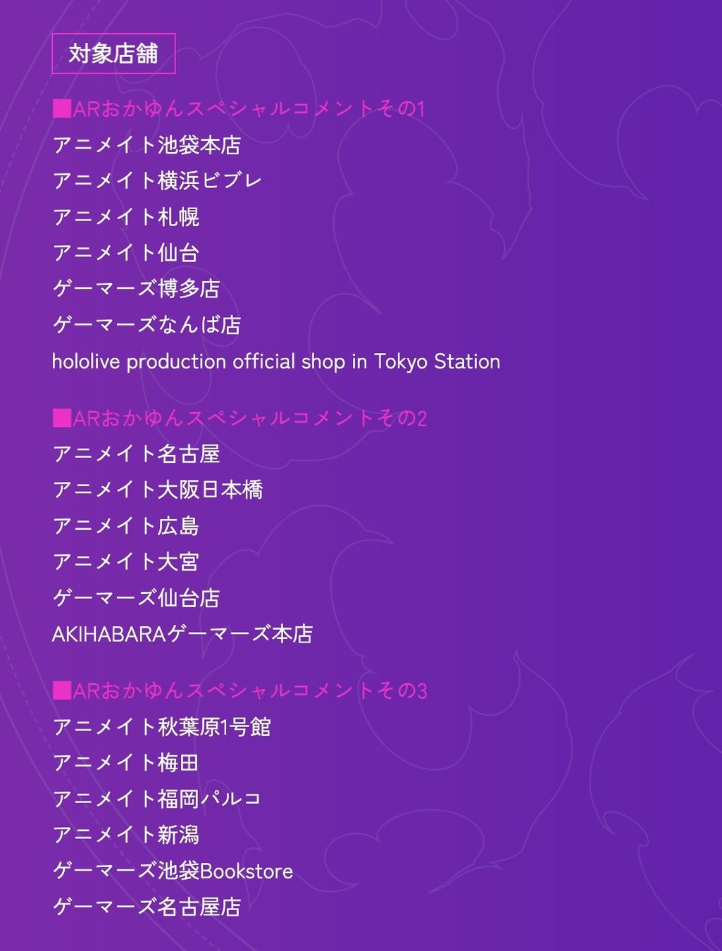 スペシャルコメントと映像は合計3種類あり、対象店舗でのみお楽しみいただけます。