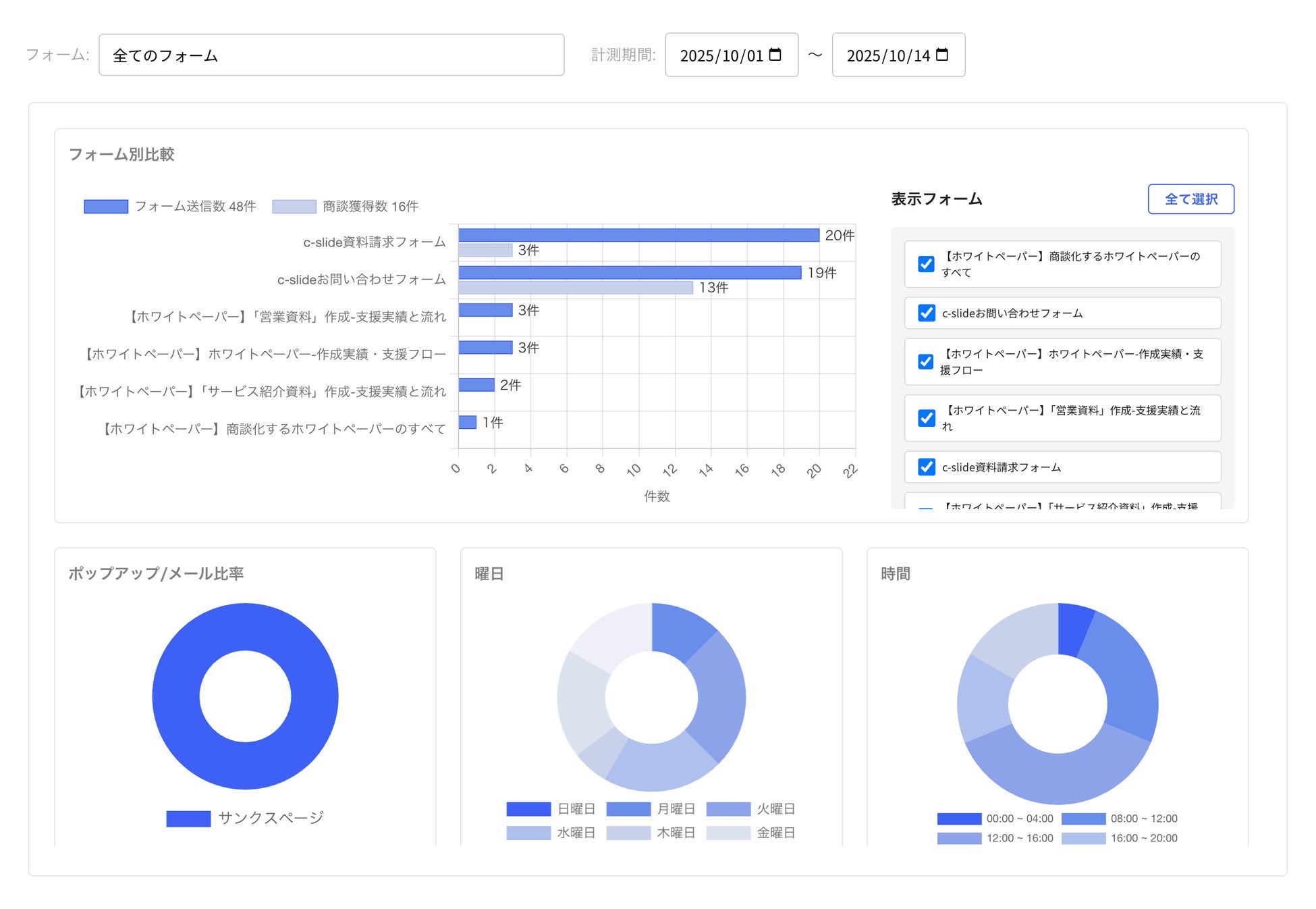 複数のフォームを運用している場合、どのフォームの成果が高いかを比較できます。