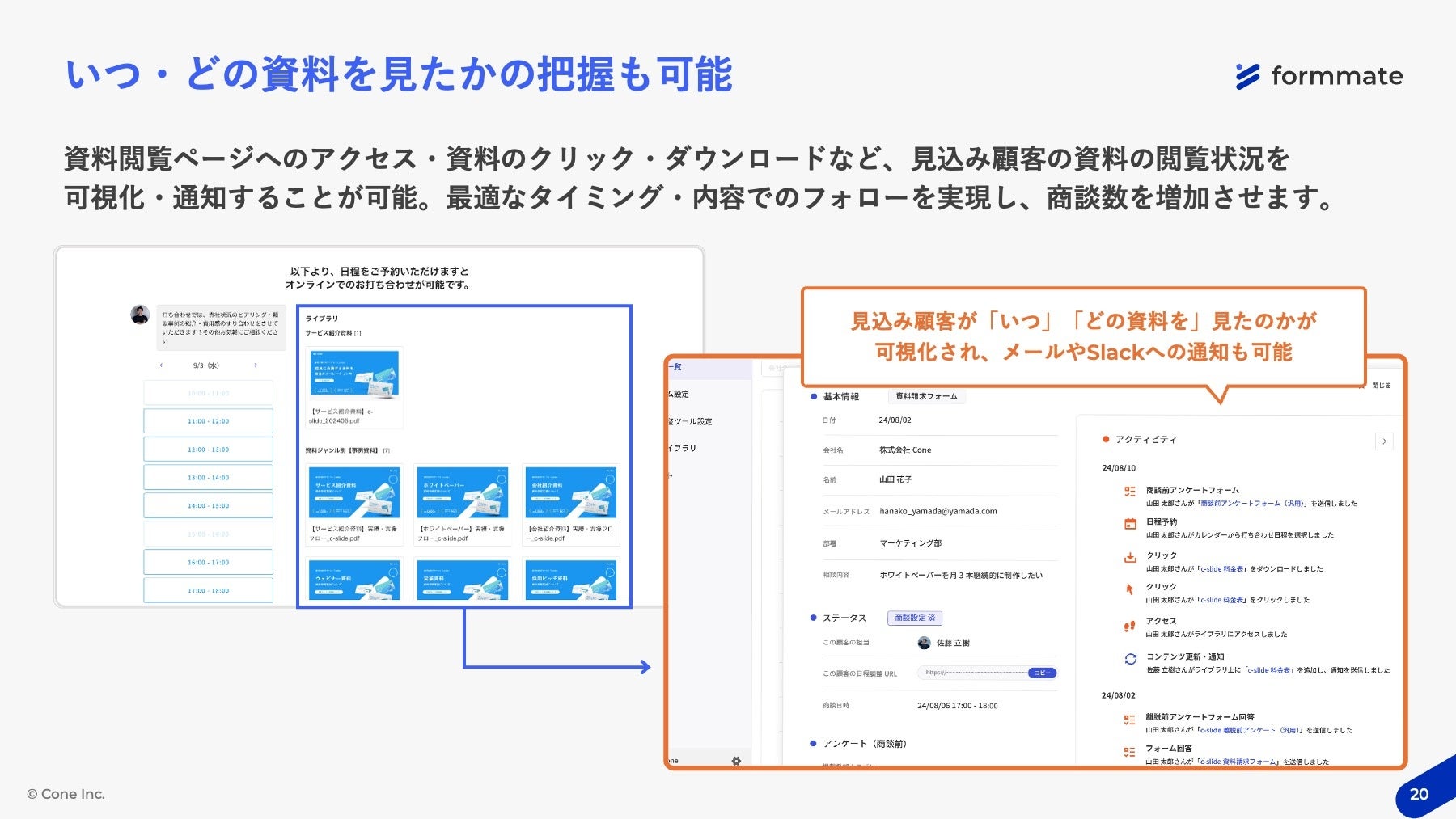 資料の閲覧状況や再訪問を検知し、商談につながりやすい見込み顧客を把握できます。
