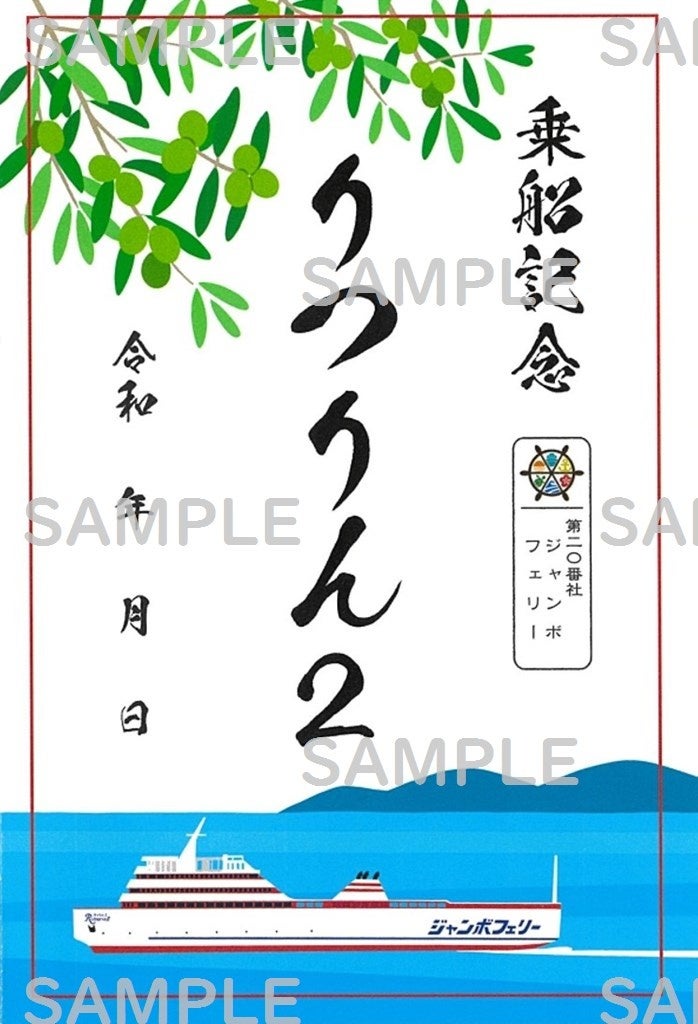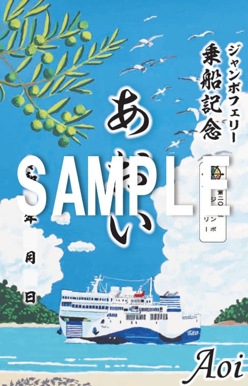 ジャンボフェリーでは「あおい」「りつりん2」それぞれのデザインの御船印を船内売店にて販売中。