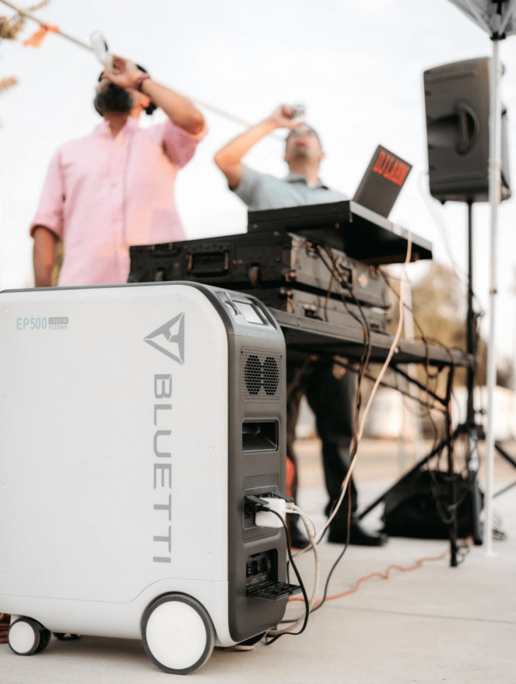2000Wの高出力、5100Whの大容量で、便利なキャスター付き大容量ポータブル電源はBLUETTIだけ。正面は細身でホワイトを側面とホイールに大きく配置したデザインも独特です。