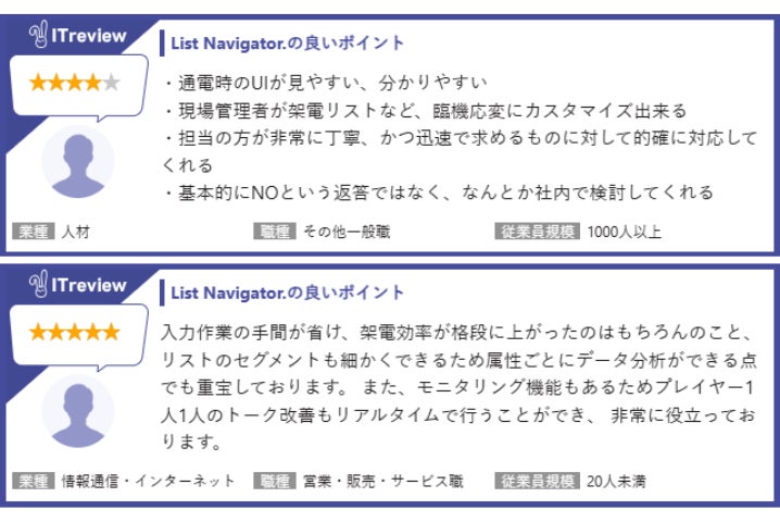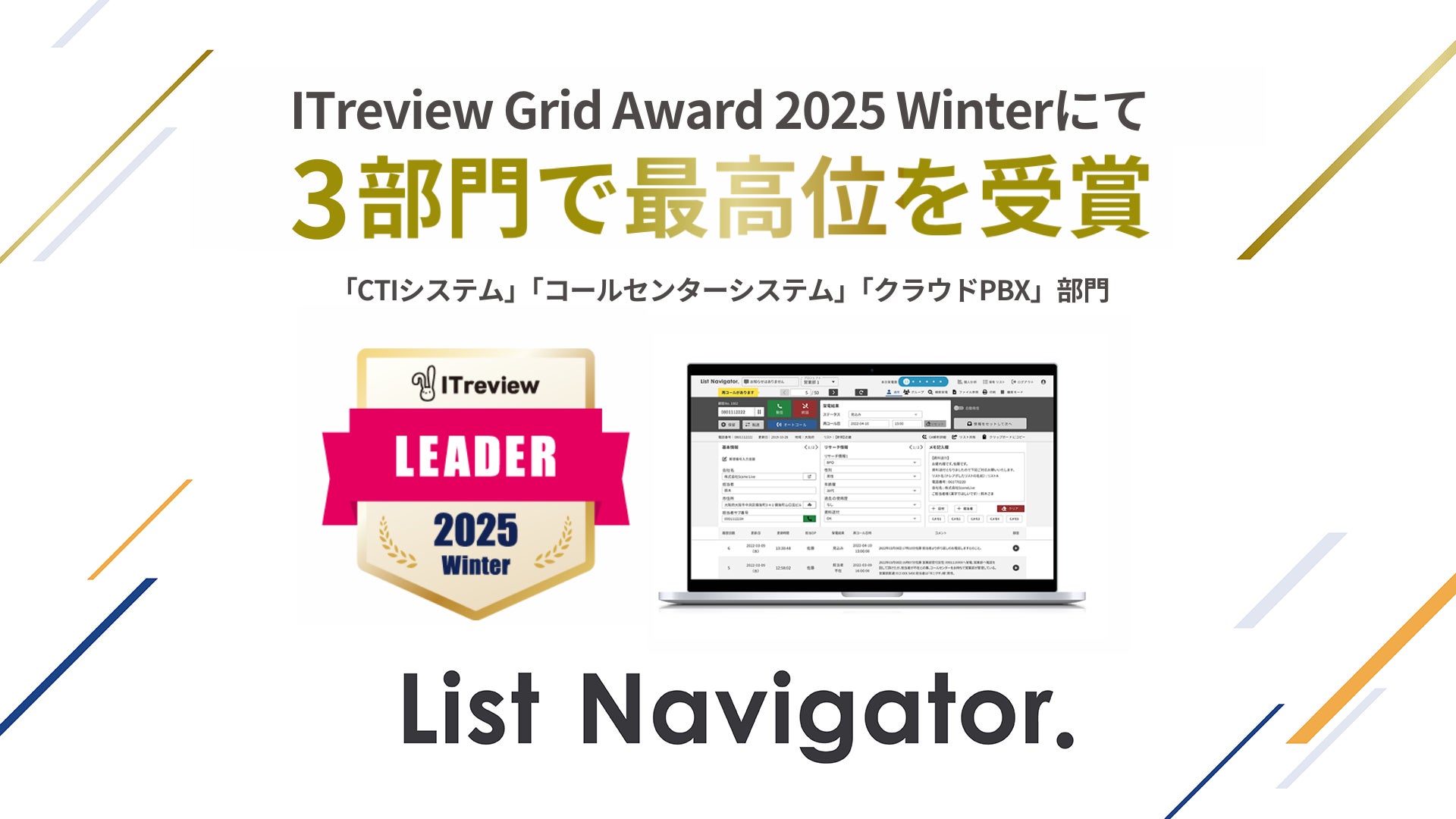 アウトバウンドコールシステム『List Navigator. 』が「ITreview Grid Award 2025 Winter」において3部門で最高位のLeaderを受賞