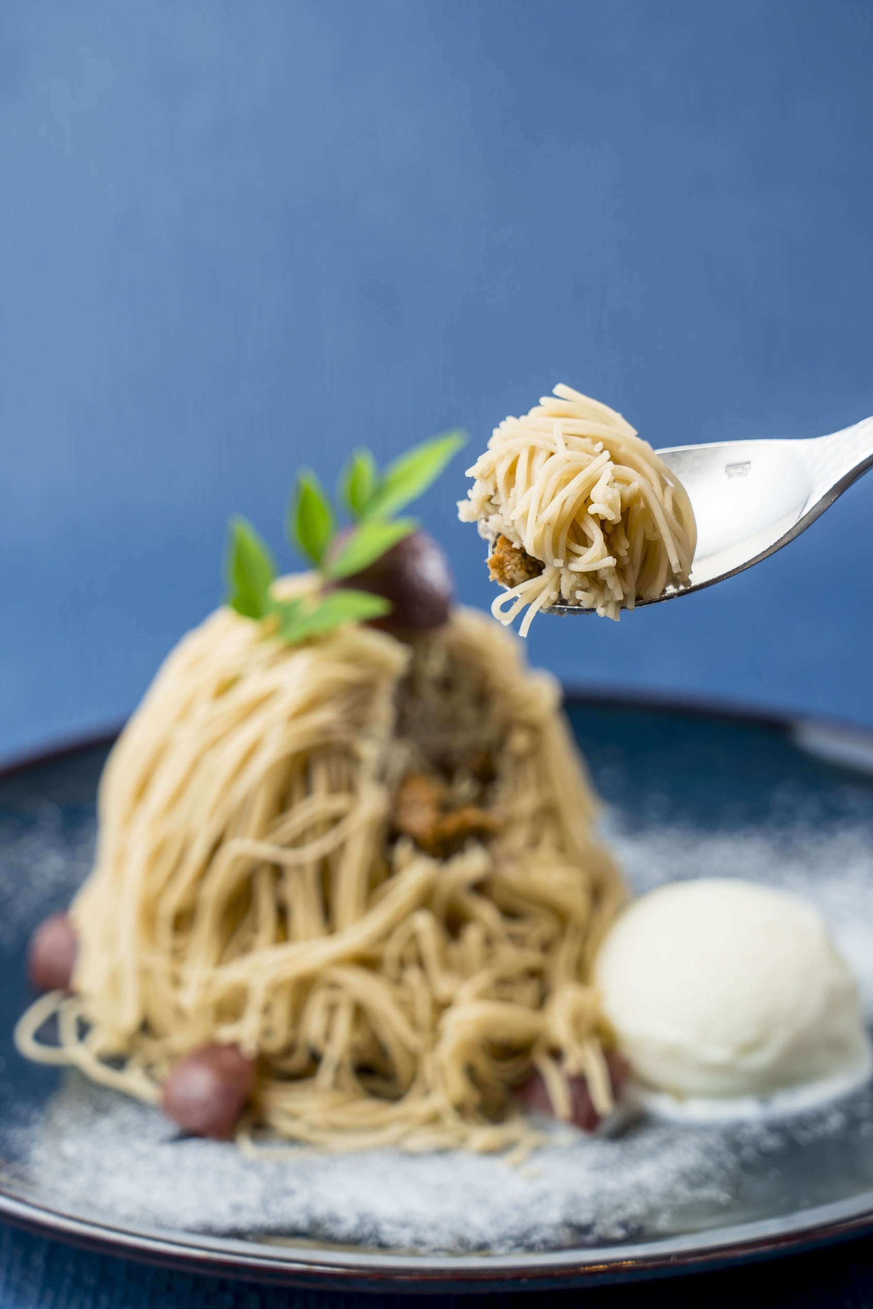 ご注文を頂いてから細く絞り仕上げる和もんぶらんは、極上の滑らかさ。ふわりと薫るブランデーと、ほうじ茶の香ばしさに大人の華やぎを感じて。