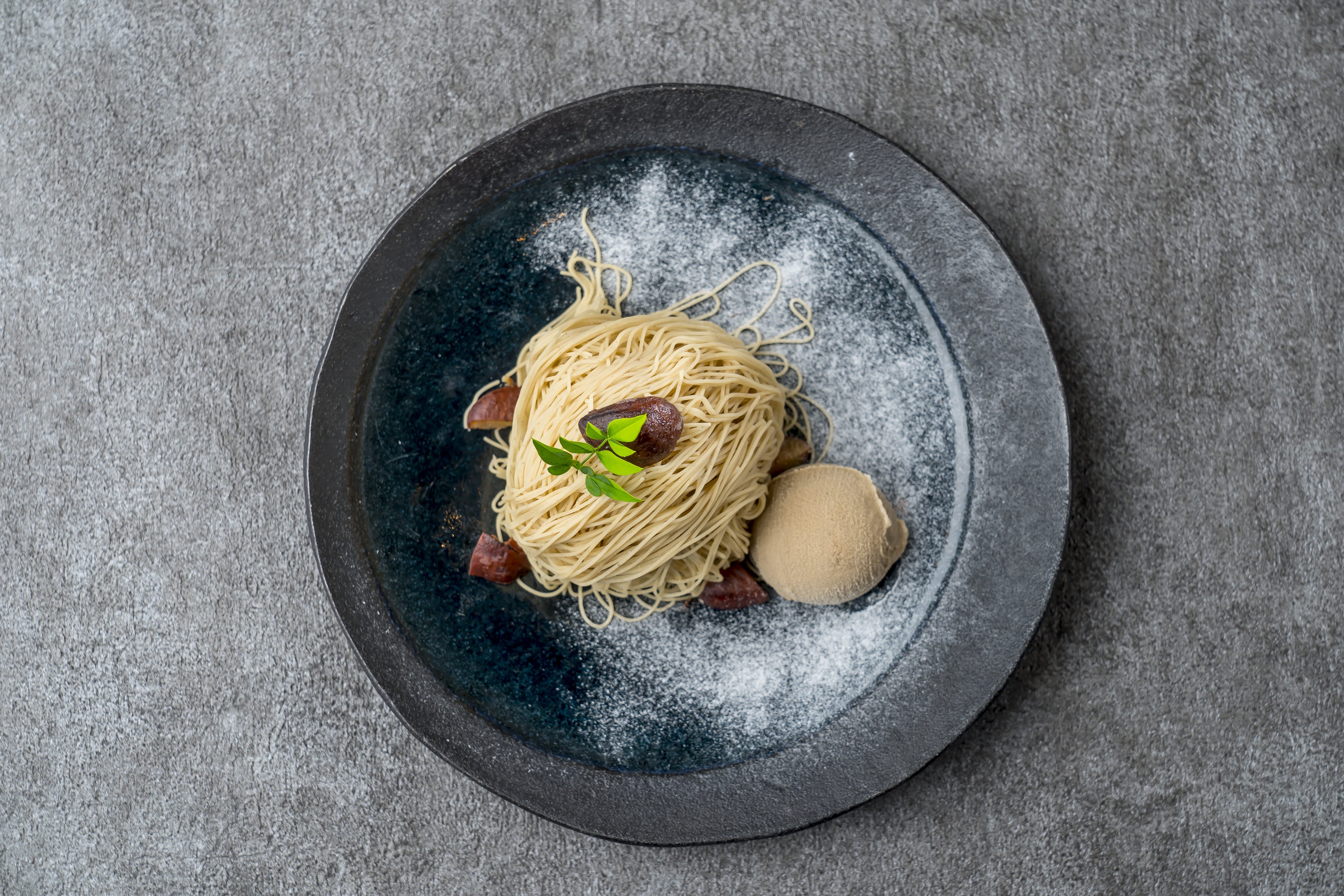 和栗と相性の良いほうじ茶を使った素材が名脇役として光る和もんぶらん。ブランデーのほのかな香りがグッと印象を引き締めて、奥深い余韻を感じる一皿に仕上がりました。