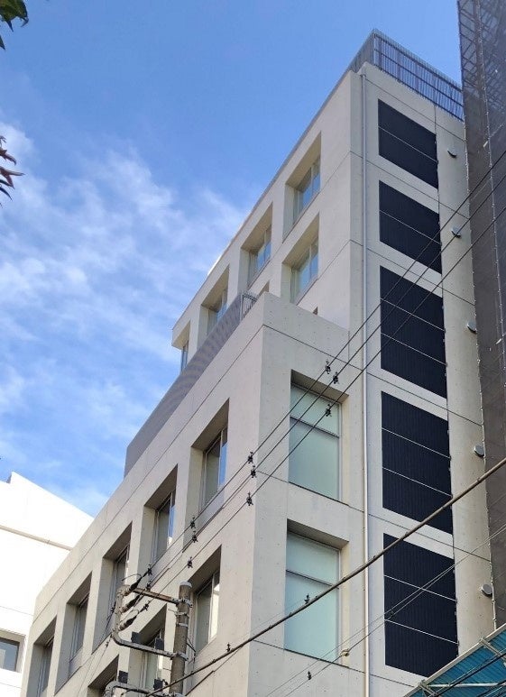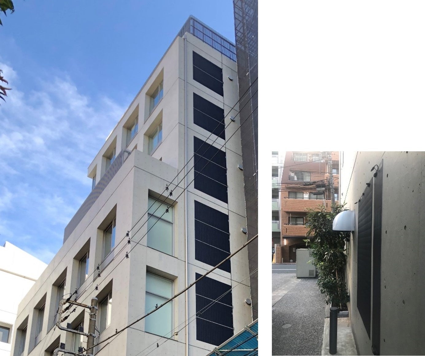 電巧社では次世代型超薄型/超軽量太陽光発電モジュール「フレキシブルソーラーG+」を全国の販売代理店網を通じて販売しております。代理店各社が事業主の要望を聞いていく中で、壁面に設置した実例を見たいという声が大変多く、この度電巧社の本社(東京都港区)の壁面に「フレキシブルソーラーG+」を設置しました。