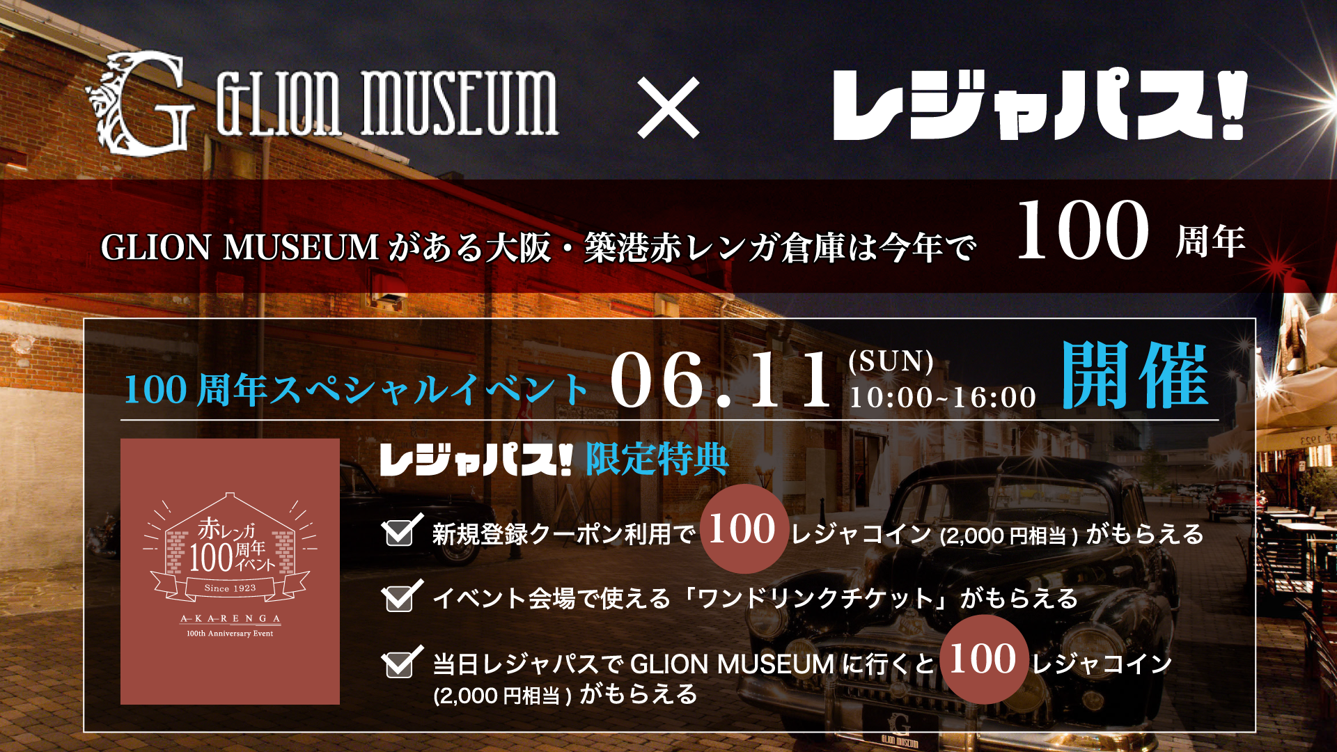 GLION MUSEUMがある大阪・築港赤レンガ倉庫が築100周年 記念してレジャパス利用で豪華特典プレゼント
