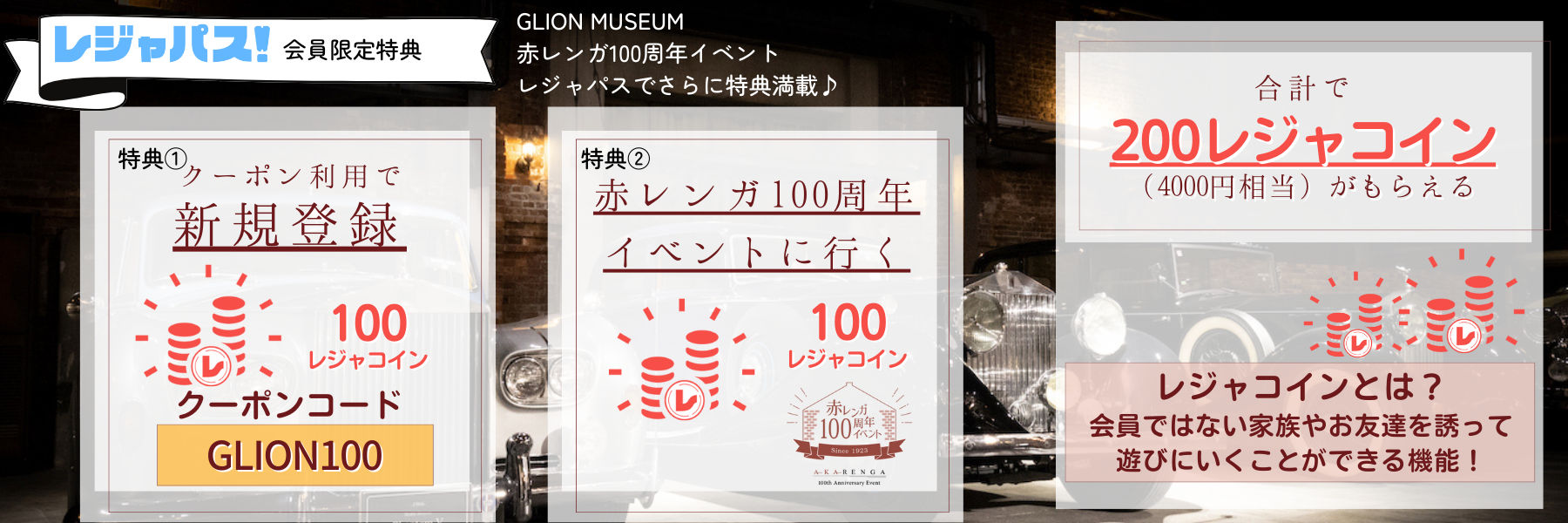 レジャパスに加盟しているGLION MUSEUMがある赤レンガ倉庫100周年を記念し、特典を用意しました!ぜひお客さまに、GLION MUSEUMの魅力を感じていただければ幸いです。