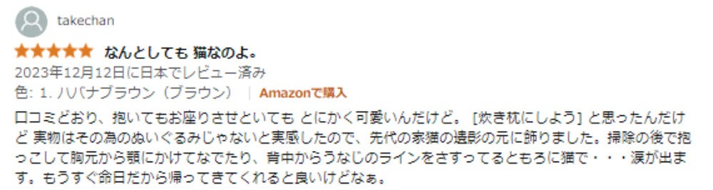 「リアル猫まくら(Neko Cushion)」は愛猫を亡くした方にも手に取っていただき、ご満足いただいております。