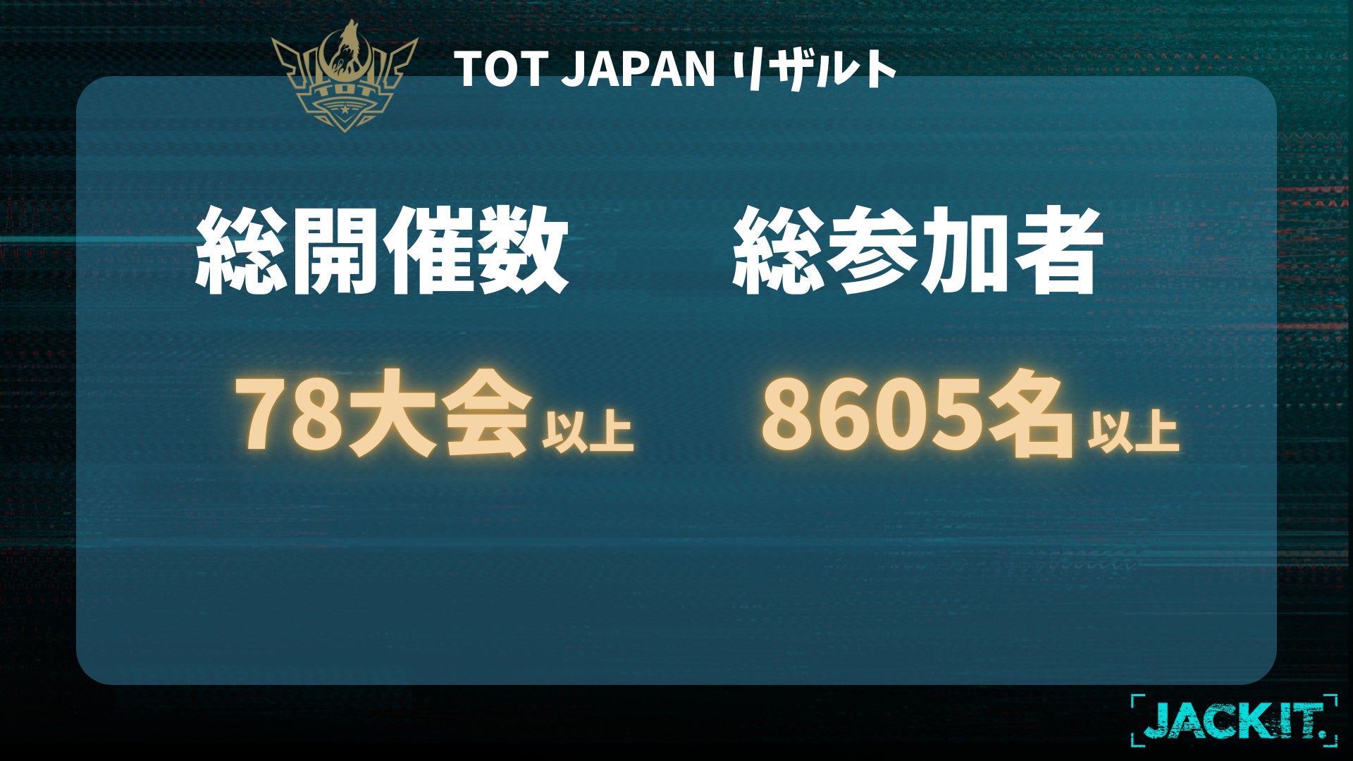 4ヶ月間78大会+、累計8,600名+のゲームプレイヤーが参加!JACK IT. 主催eスポーツトーナメント「TOT」で活躍したコミュニティを表彰!「TOT JAPAN AWARD 2024」開催
