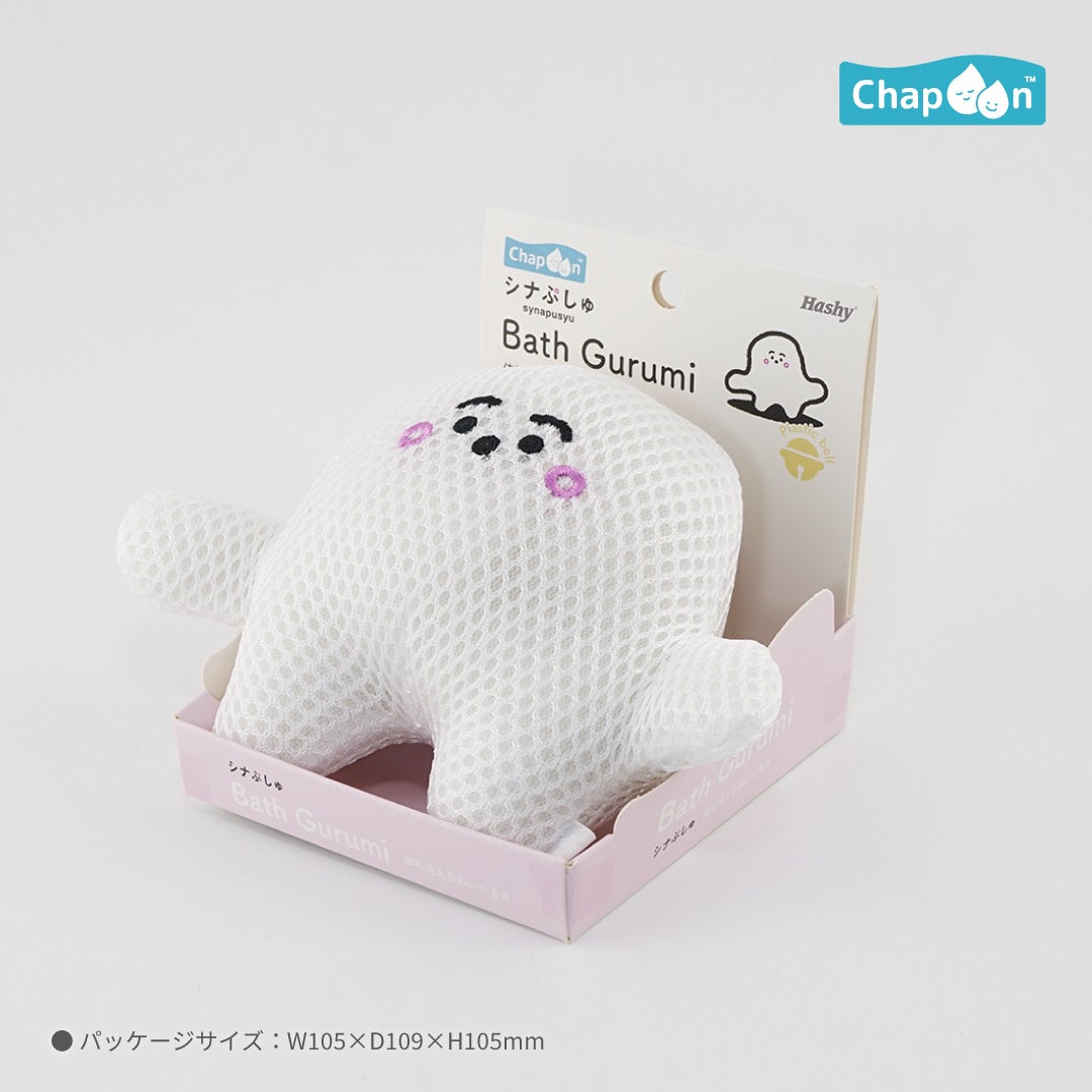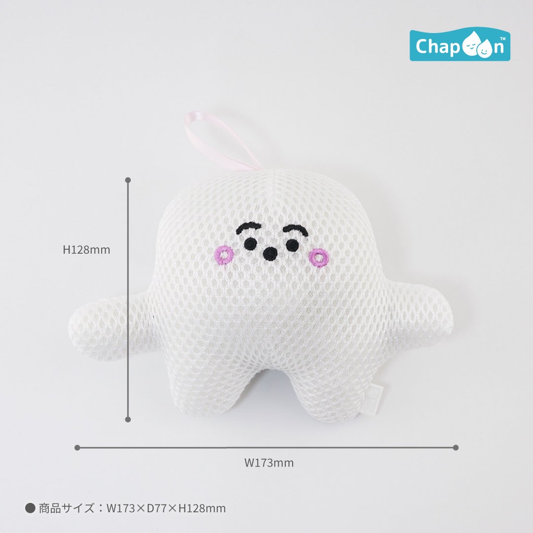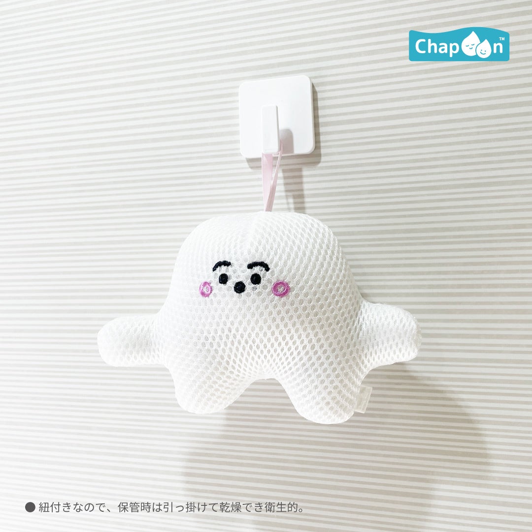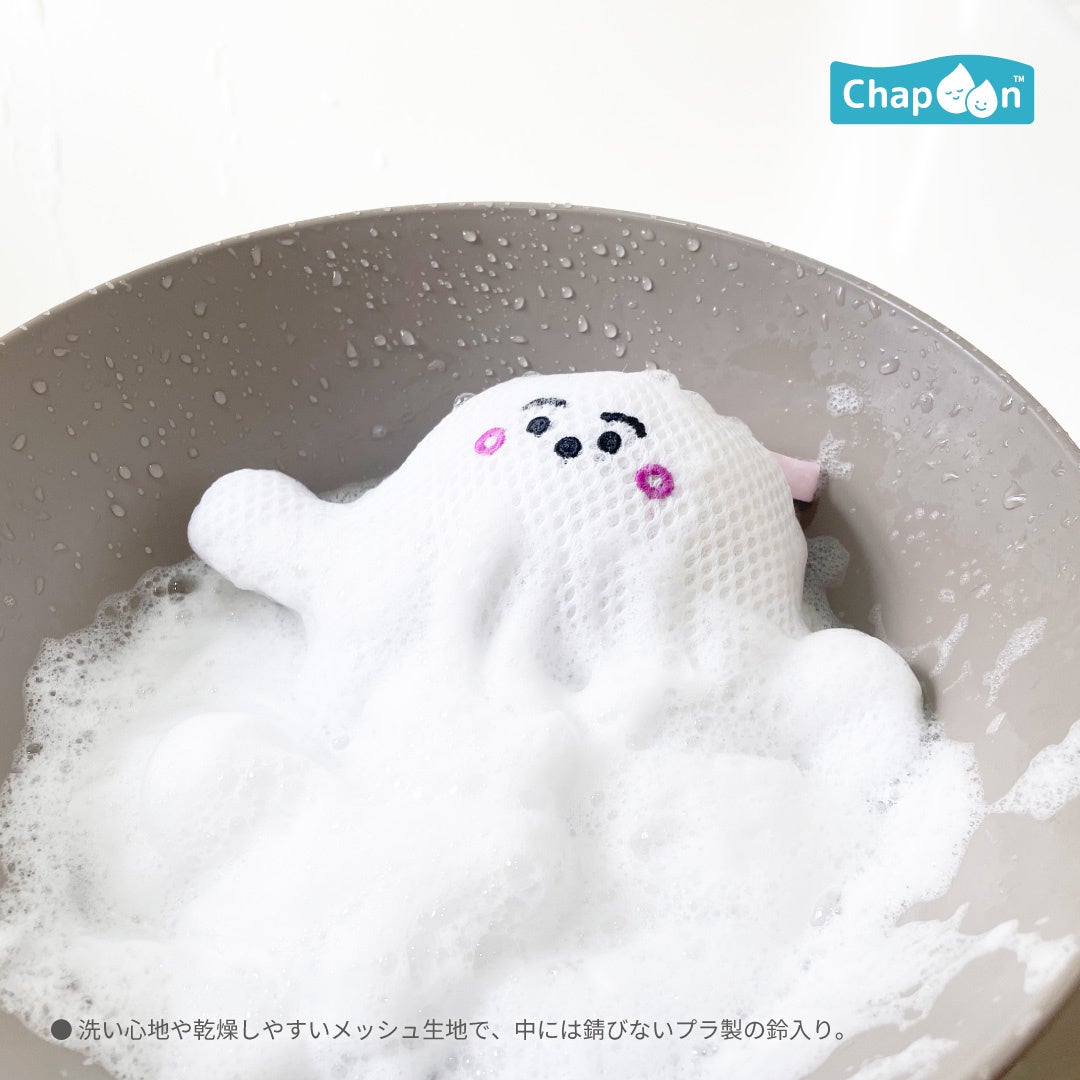 ぷしゅぷしゅの形状そのままぬいぐるみにしました。ボディスポンジとしても洗いやすく、乾きやすいメッシュ素材。 錆びないプラ製の鈴が入っているので、身体を洗う度に軽やかな鈴音が鳴りお子様に大人気の商品です!お風呂時間をもっと楽しく♪