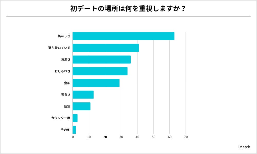 また、初デートで行くお店は、「美味しさ」や「雰囲気」を重視する女性が多いようです。女性好みのお店をチョイスして、ぜひ初デートを成功させてください。