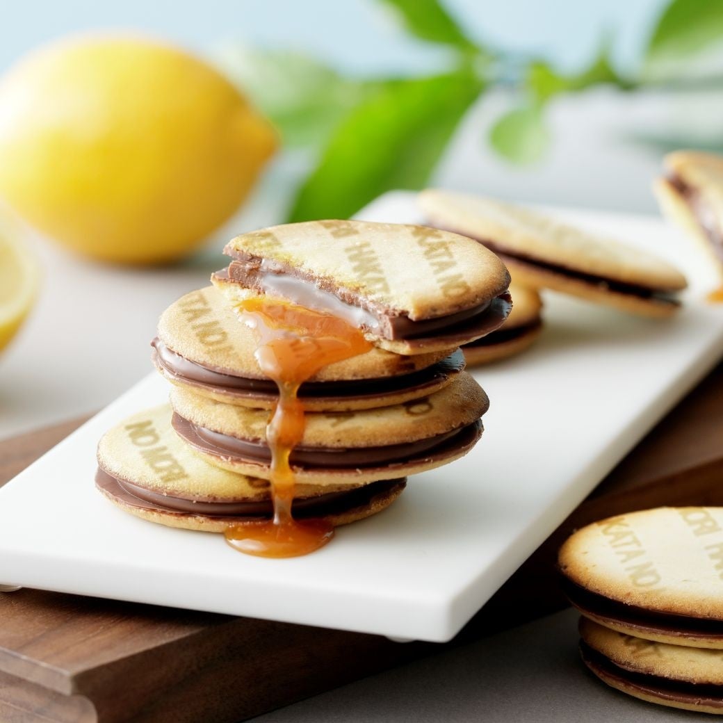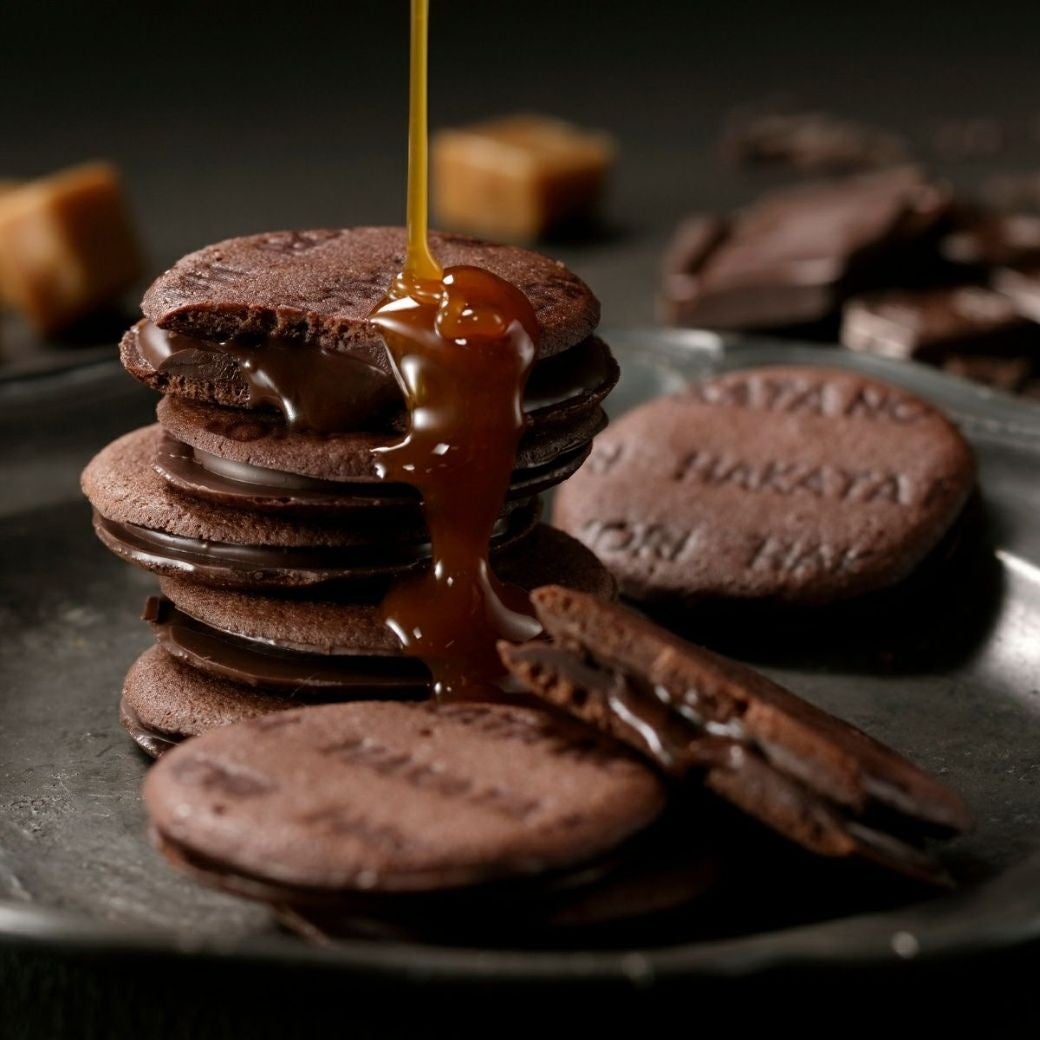 博多の森 生キャラメルサンドは福岡県内生産・加工小麦粉使用し、サクっと洗練された食感の高級感あるお菓子です。とろける生キャラメルをチョコレートで包み込み、4種類のフレーバーどれもが口に入れた瞬間に上品な香りを楽しむことができます。そのままでも十分に美味しいですが、冷蔵庫で冷やすことでより一層美味しくなります。