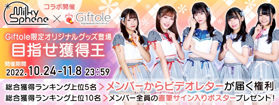 期間中、Milky✳︎Spheneオリジナルグッズを最も多く獲得いただいた総合獲得ランキング1~5位の方に、『メンバーからビデオレターが届く権利』をプレゼント!