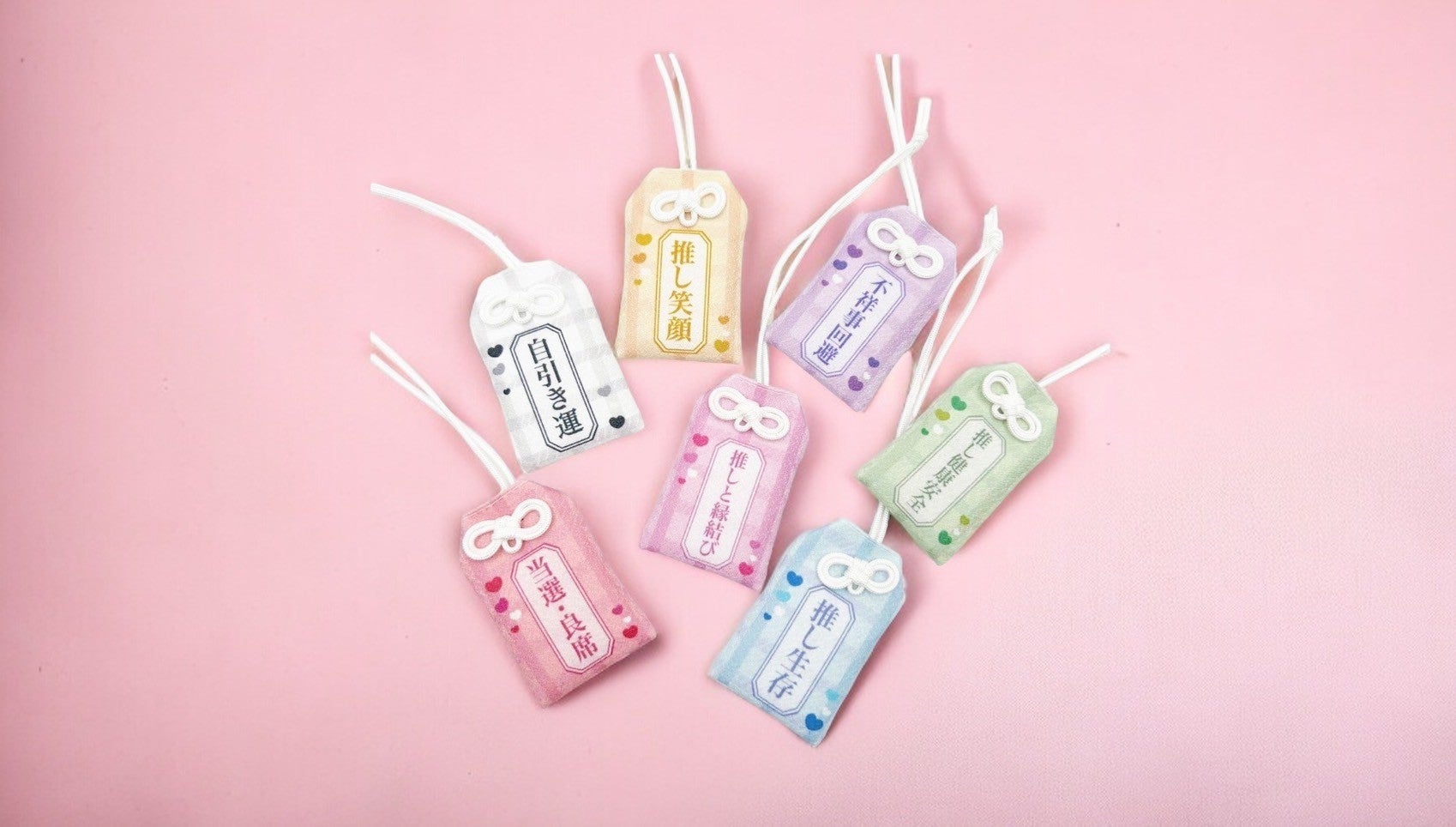 「当選・良席」「推しと縁結び」「自引き運」等の"推し活で叶えたい"願いを込めたお守りとなっております。Oshicoco公式Instagramを通して、実際に"推し活層の欲しいデザイン"をヒアリングしながら制作したオリジナル商品です。