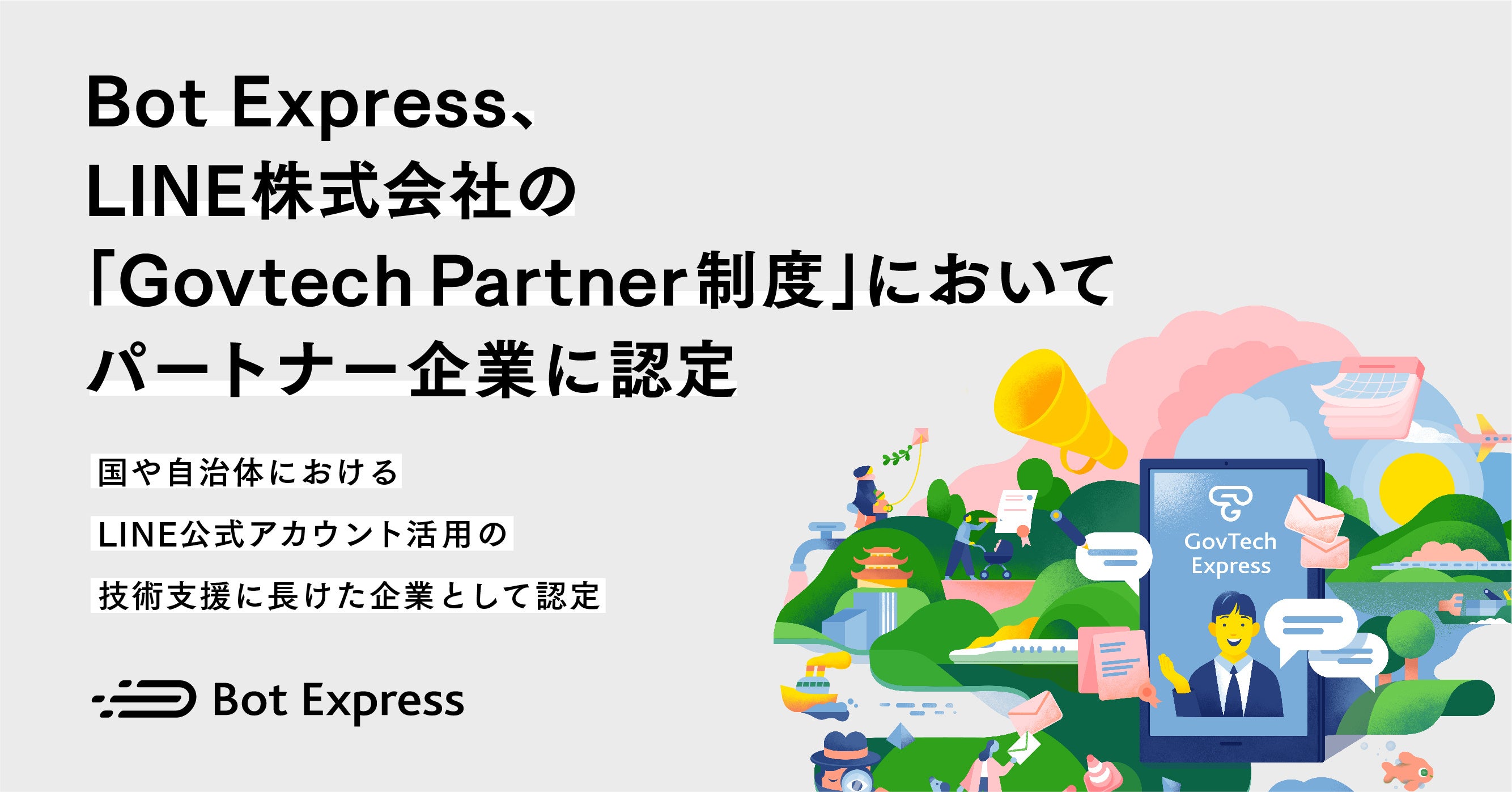 Bot Express、LINE株式会社の「Govtech Partner制度」においてパートナー企業に認定。国や自治体におけるLINE公式アカウント活用の技術支援に長けたパートナー企業 として認定