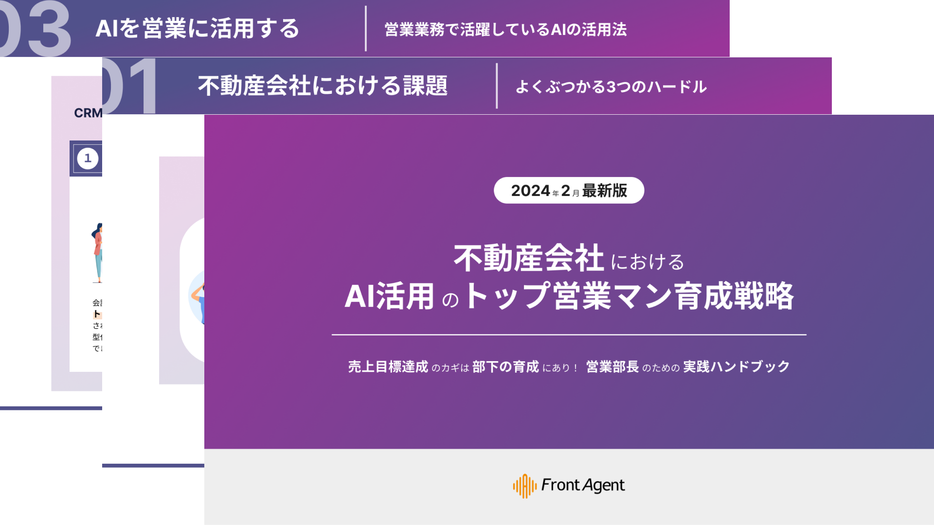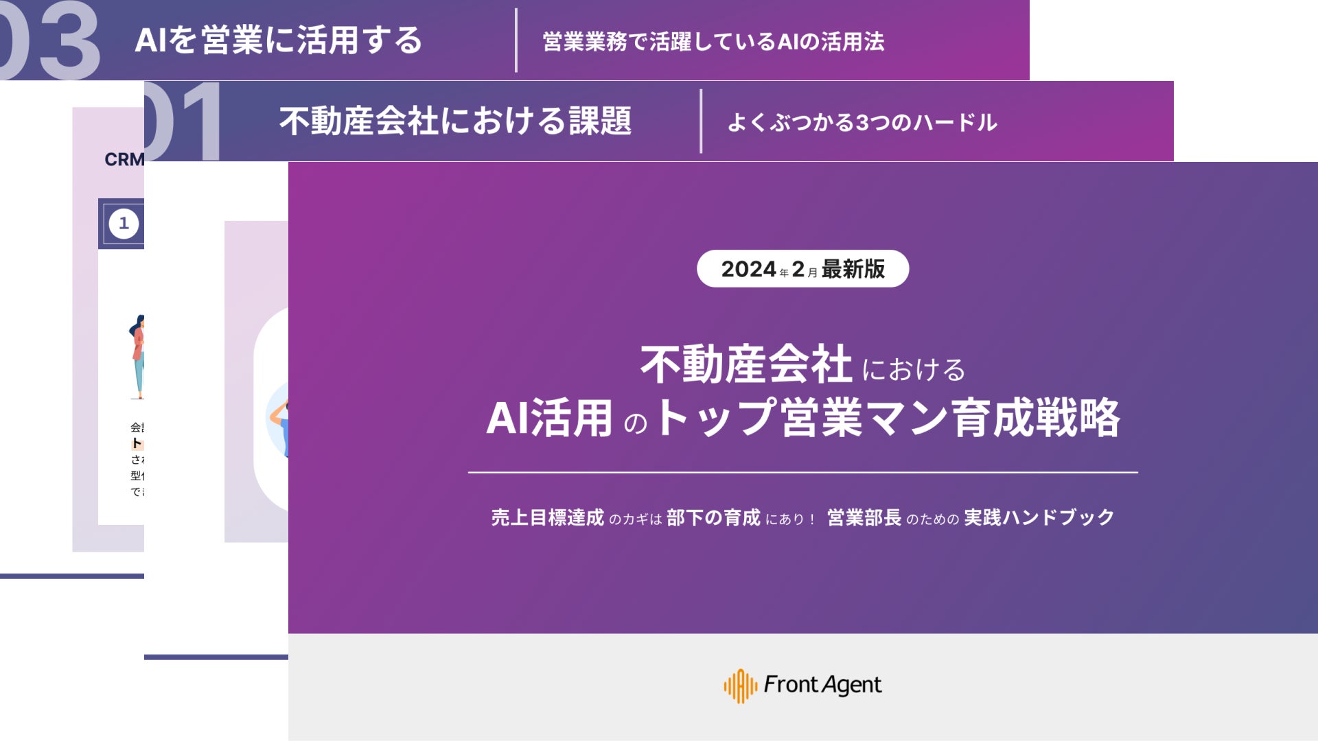 Umee Technologiesは、労働人口が減少する中、営業組織の人材活用戦略をサポートするために、商談アシストプラットフォーム「Front Agent」を開発・運用しております。不動産業のお客様への伴走支援を通して、業界共通の営業活動における課題が浮かび上がりました。これらの課題を克服し、業界全体の生産性向上を促進するために、「不動産会社におけるAI活用のトップ営業マン育成戦略」を制作いたしました。