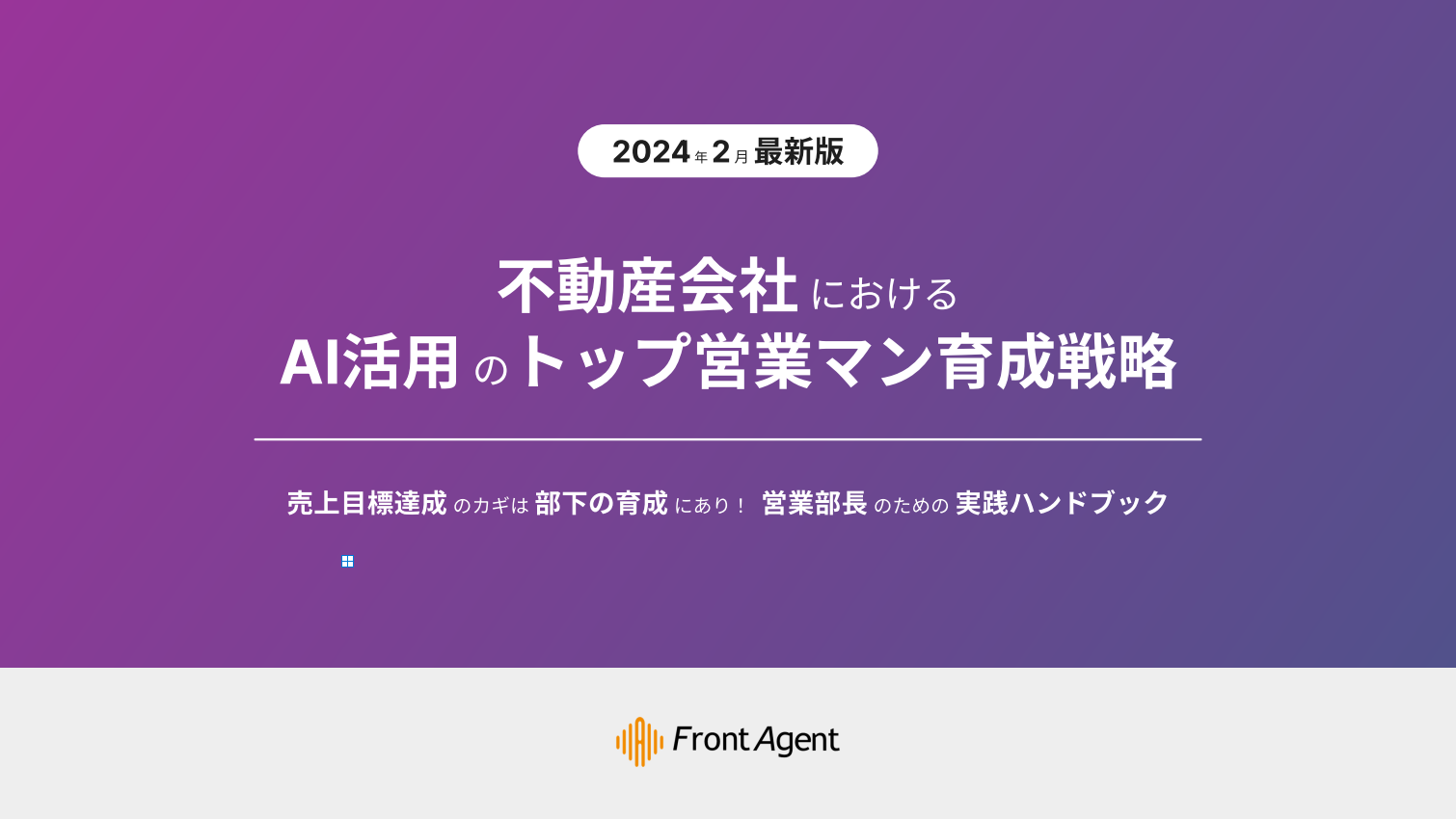 商談の成功パターンから会話のアシストAIを自動生成する商談アシストプラットフォーム「Front Agent」を開発するUmee Technologies株式会社は、不動産業界のプロフェッショナルに向けて、最新の「24年2月最新版:不動産会社におけるAI活用のトップ営業マン育成戦略」を公開しました。