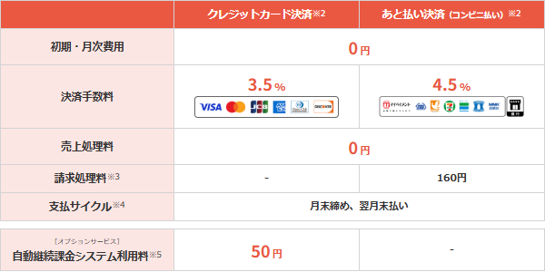 ※6 上記料金は、あと払い決済サービスの決済手数料を除き、すべて税別表記となります。