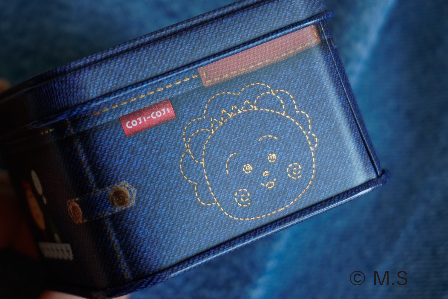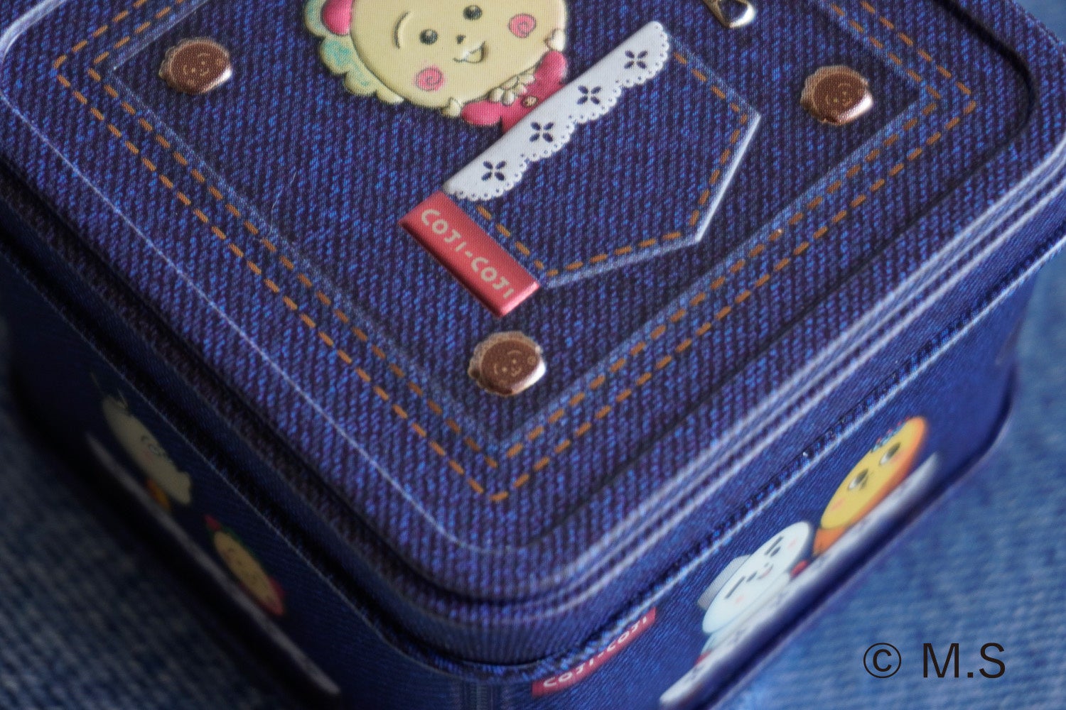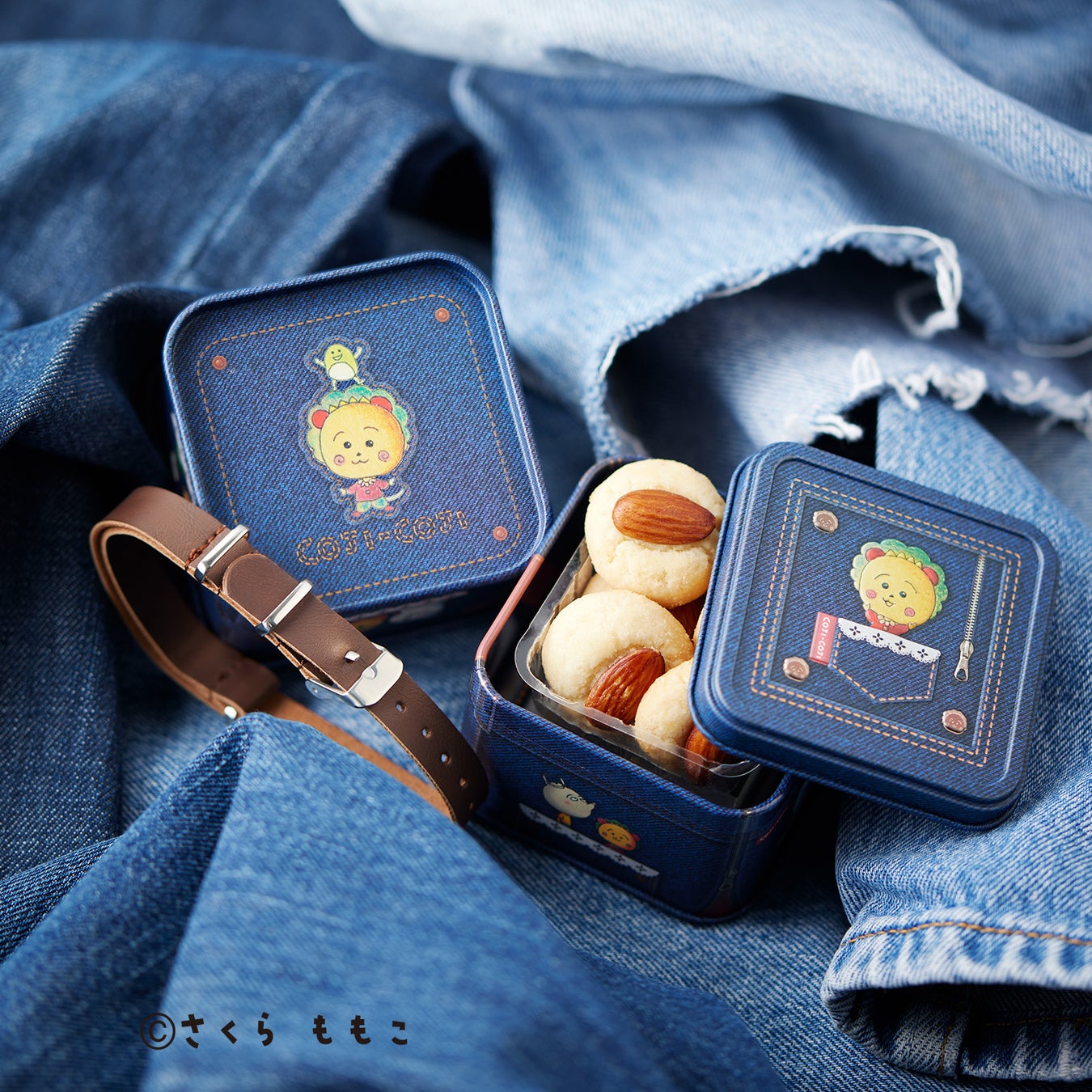 デニム素材風デザインのミニ缶にコジコジが盛り盛り!
