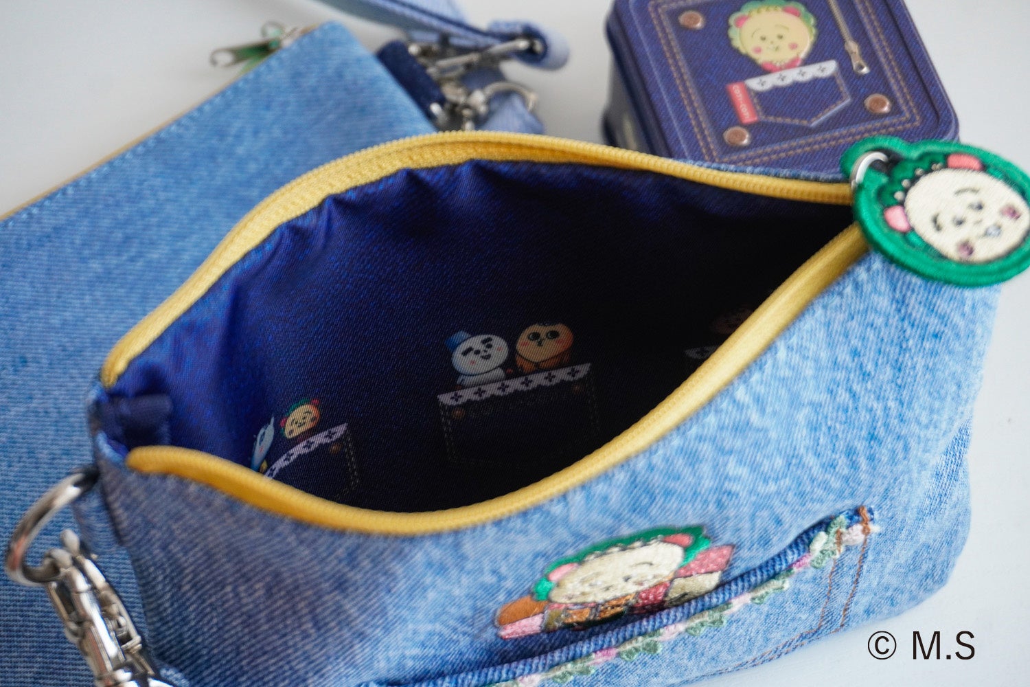 『コジコジデニムポーチ』には、『コジコジ缶3』の底面にいるコジコジをワンポイントで刺繍。さらに裏地には、『コジコジ缶3』の蓋面や側面のコジコジと仲間たちがプリントされた、遊び心満載のデザインです。思わず何度でも覗き込んでしまいます。